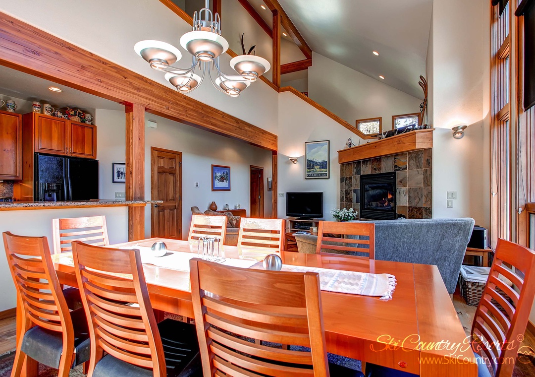 Measuring a generous 1,995 square fee, this stylish chalet exudes an inspiring ski-themed design boasting vaulted ceilings, hardwood floors and an open concept design that encourages quality time and togetherness, making it perfect for larger groups. Unwind in the living room, complete with comfortable seating, a 40" flat-screen TV/DVD, and the cozy ambiance of a decorative rock gas fireplace, perfect for memorable family movie nights.