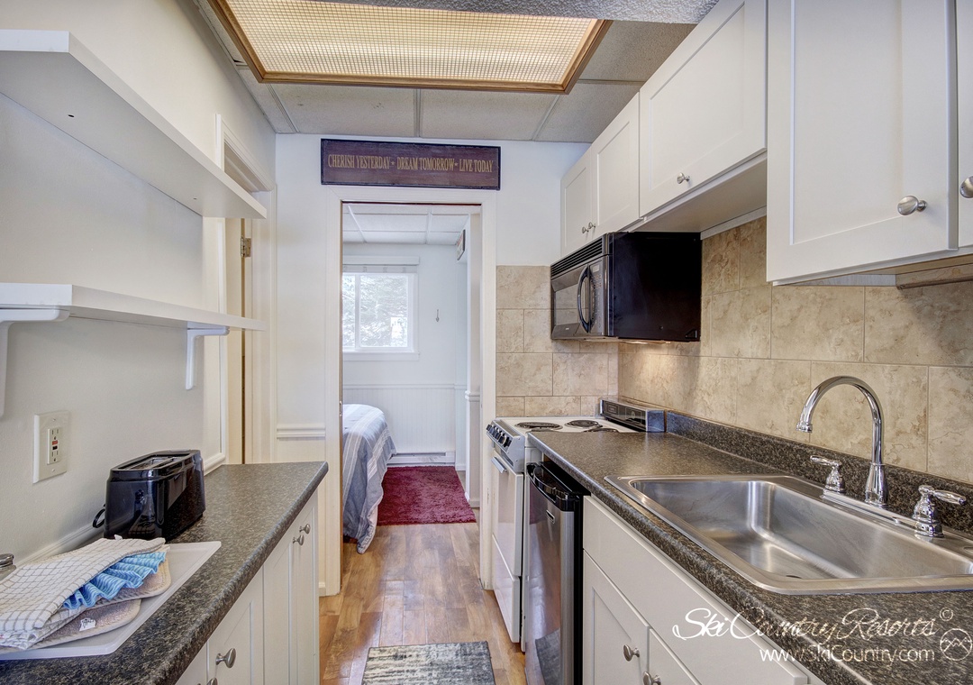 Enjoy ground floor access to this one bedroom, one-bathroom condo with well thought out touches throughout. The brand new, luxury vinyl flooring offers easy cleanup for any 'outdoors' you may bring 'indoors' and the recently refurbished kitchenette provides the perfect cooking quarters for a quick meal between ski runs. Equipped with mini fridge, stovetop, oven, microwave and all the cooking and dining utensils needed to prepare a home cooked meal during your stay.