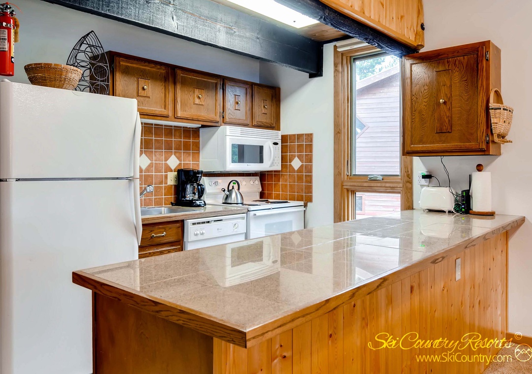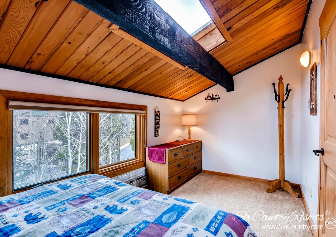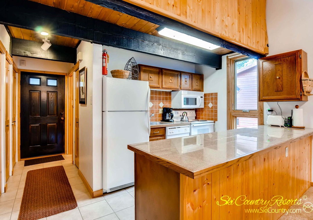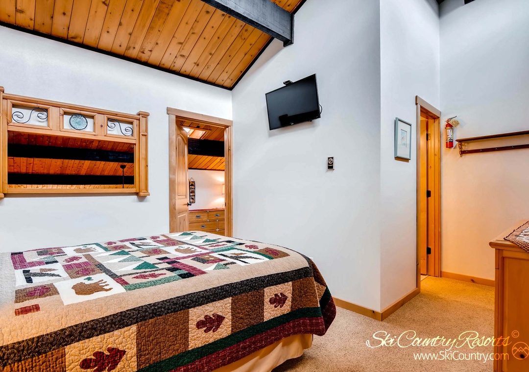 As you step inside this third-floor condominium (please note : this complex provides no elevator access!), you'll discover a cozy and spacious one-bedroom plus loft, two-bath unit that can comfortably accommodate up to six people. The open layout boasts tongue and groove vaulted ceilings, creating a warm and inviting atmosphere. Sink into the plush couch or one of the two side chairs in the living room, where you can unwind and enjoy your favorite DVD on the impressive 40 inch flat-screen TV. Alternatively, curl up with a good next to the inviting gas fireplace. Step out onto the small outdoor balcony, furnished with two chairs, and savor unobstructed views of majestic Baldy Mountain.