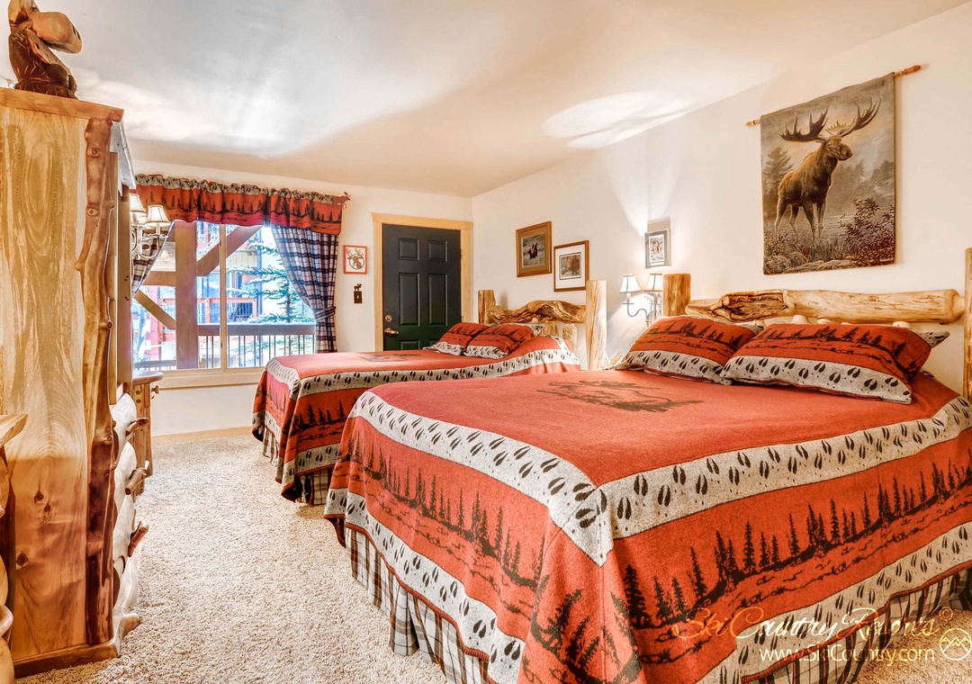 This spacious and inviting 2 Bedroom + Loft, 3 Bath condo offers a perfect blend of comfort and style. Beautifully appointed throughout, perhaps the key highlight to this unit is its floor to ceiling windows offering stunning views of the meandering Blue River below. Recently remodeled bathrooms and new bedding add a touch of modern luxury to the charming moose-themed decor.
