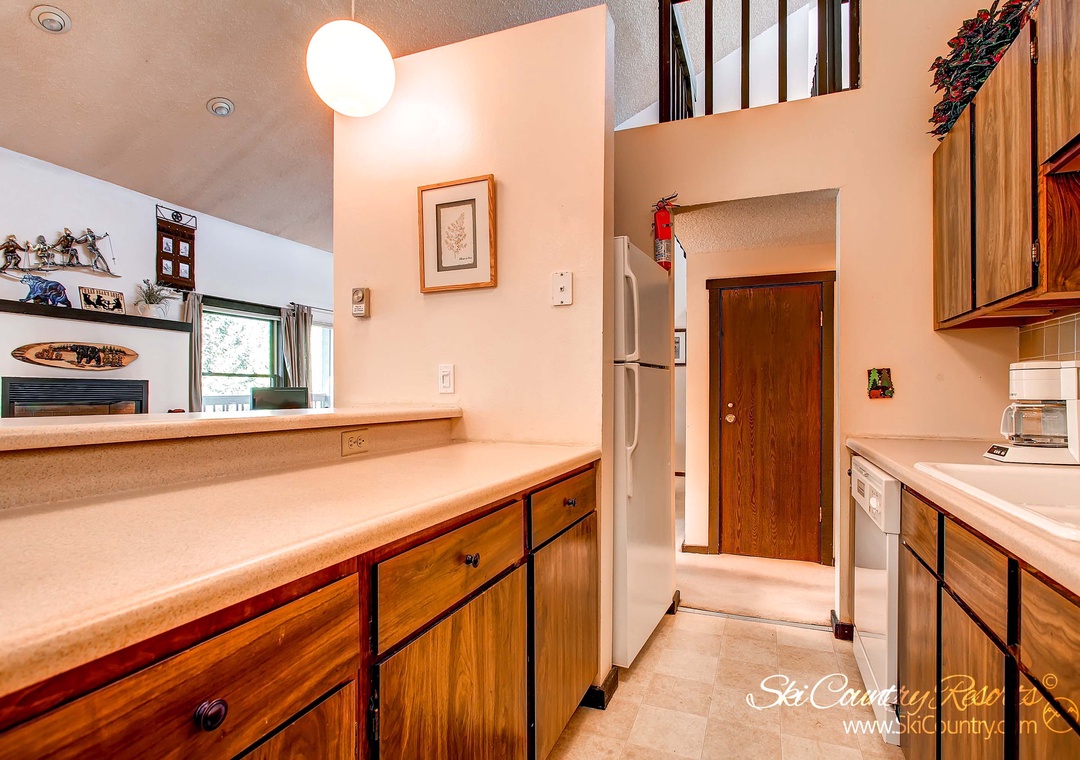 Your vacation retreat at Tannenbaum 33 offers a spacious and inviting haven spanning 1,475 square feet and located on the top (third) floor of the complex. With two bedrooms and an additional open loft, there's ample room for everyone to relax and revel in the mountain atmosphere. The fully equipped kitchen awaits your culinary creations, complete with all cooking and dining utensils. Gather around the four-person dining table or perch on the kitchen countertop bar, accommodating three more guests. Share laughter and memories as you savor meals together.