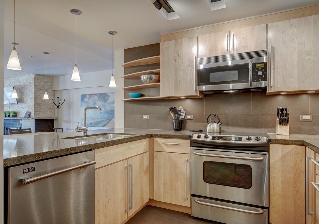 Step outside the elevator-service building each morning directly onto Peak 9's slopes. Cruise back home for lunch or apres-ski cocktails in your well-equipped granite kitchen. Gather around the wood-burning fireplace and admire panoramic mountain views through floor-to-ceiling windows.