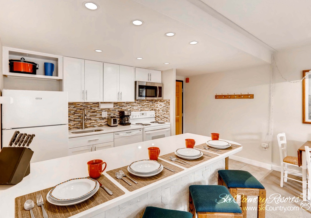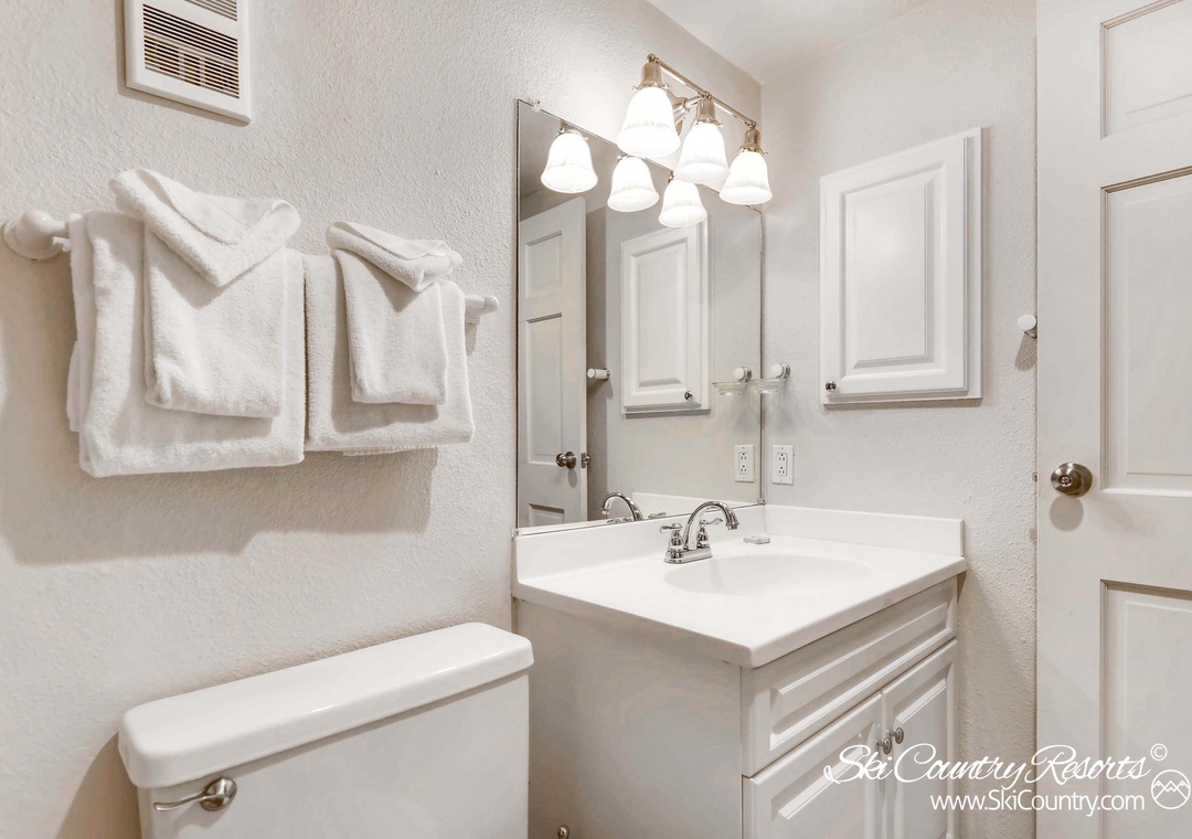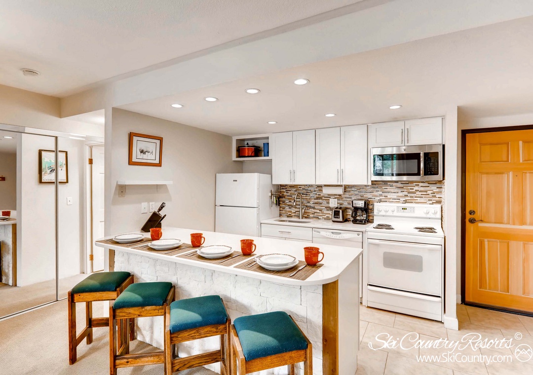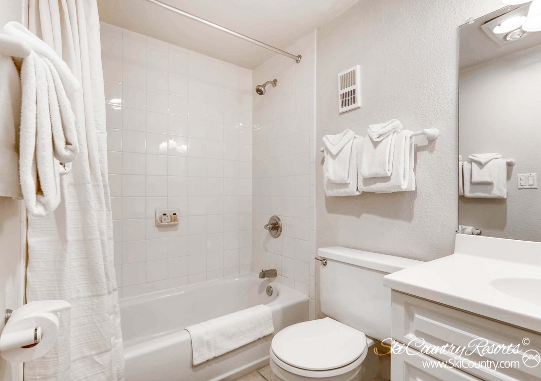 After a day of skiing the 187 trails in winter or exploring the myriad of hiking and biking trails in summer, retreat to the spacious bedroom, where a new King Tempur-Pedic mattress promises a restful night's sleep. In here, another 34-inch SMART flat-screen TV invites you to get lost in a show or movie. The bedroom also offers additional access to your private balcony, so you can awaken refreshed to the breathtaking views of the surrounding mountains. With a Queen sofa sleeper in the living area, this condo comfortably accommodates up to four people. Meanwhile, the recently remodeled full bath beckons with its combination shower/tub and soft vanity lighting, creating the perfect setting for a soothing bath or hot shower after a day of outdoor adventure.