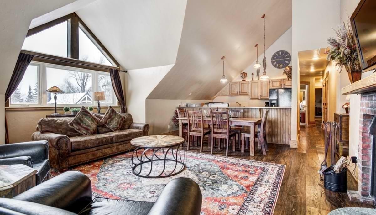 Downtown access and dog-friendly rules rarely come together this smoothly. This penthouse puts you steps from the gondola, Main Street, and free county transit, which makes short walks with your dog part of the daily rhythm. Inside, vaulted ceilings and sun-filled living spaces create a relaxed home base that works just as well for après-ski lounging as it does for slow mornings with coffee and a leash in hand.