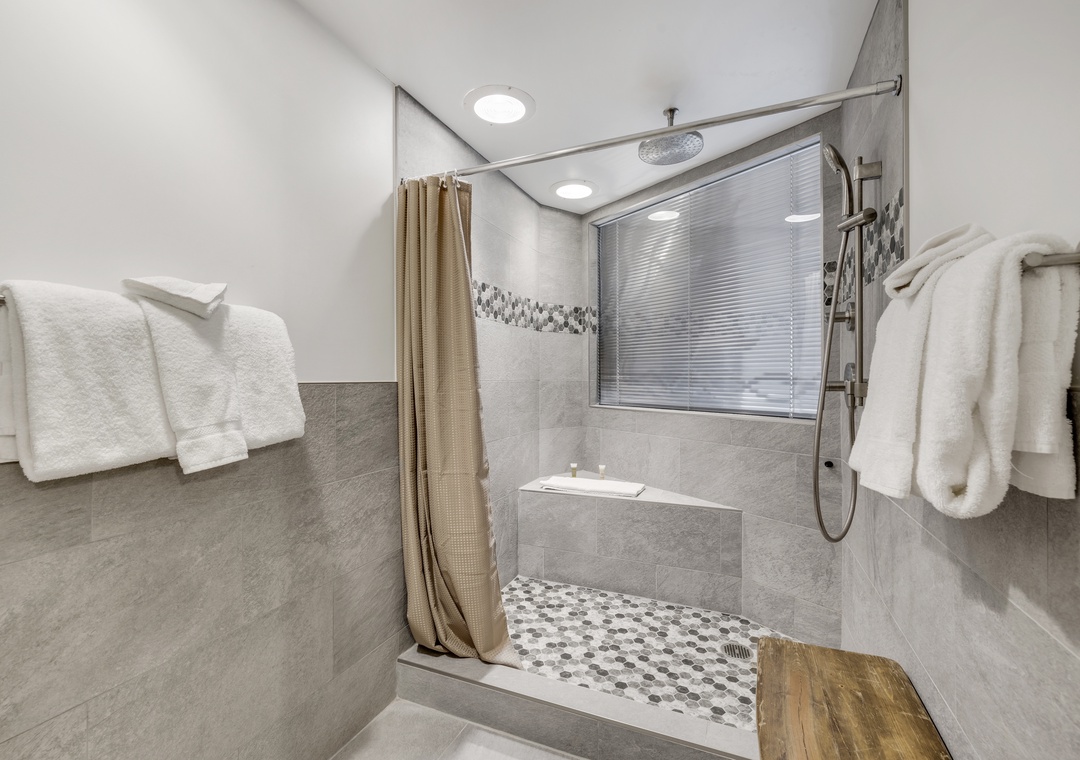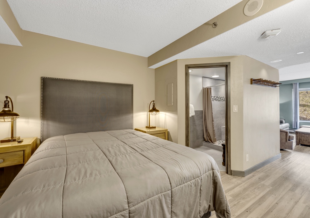 Inside, you will find a large sleeping area with a queen bed. A full bathroom with a modern appeal. A kitchen space to make mealtime effortless. Also, a large common area that includes a dining area where your group can relax and create memories together.