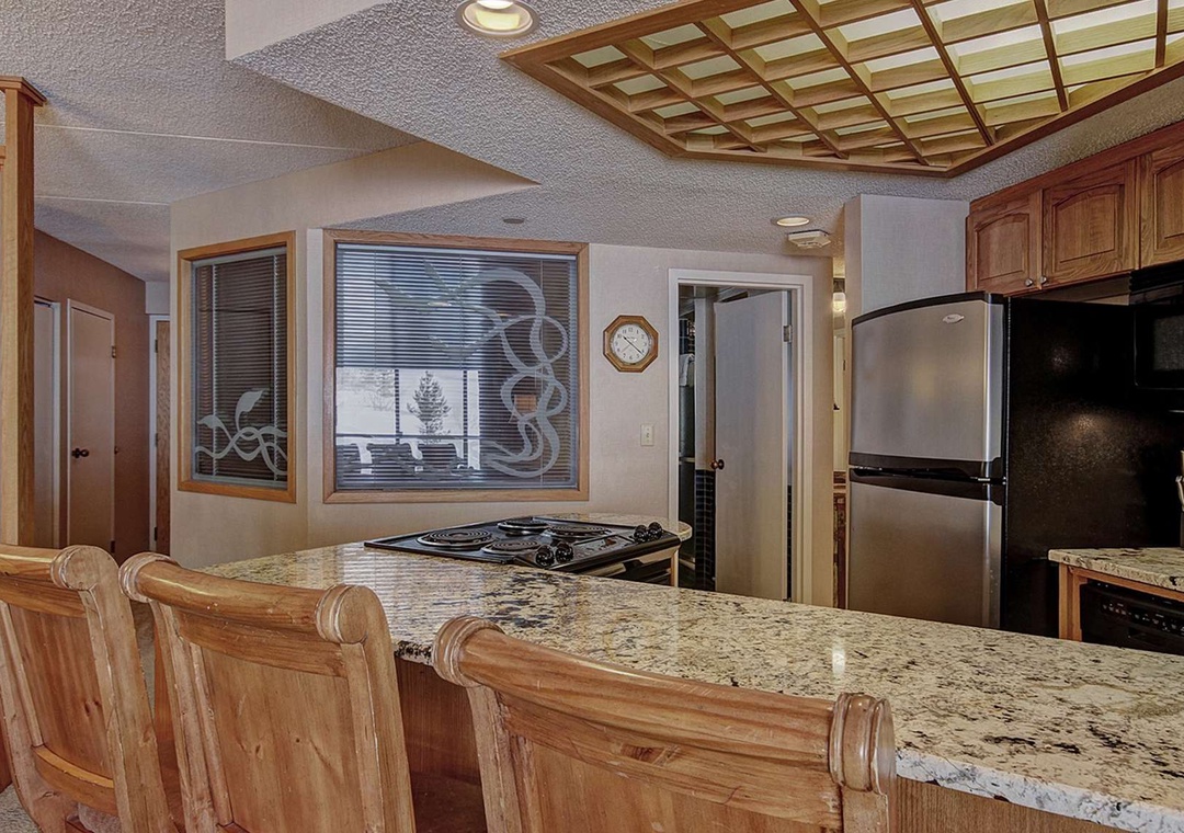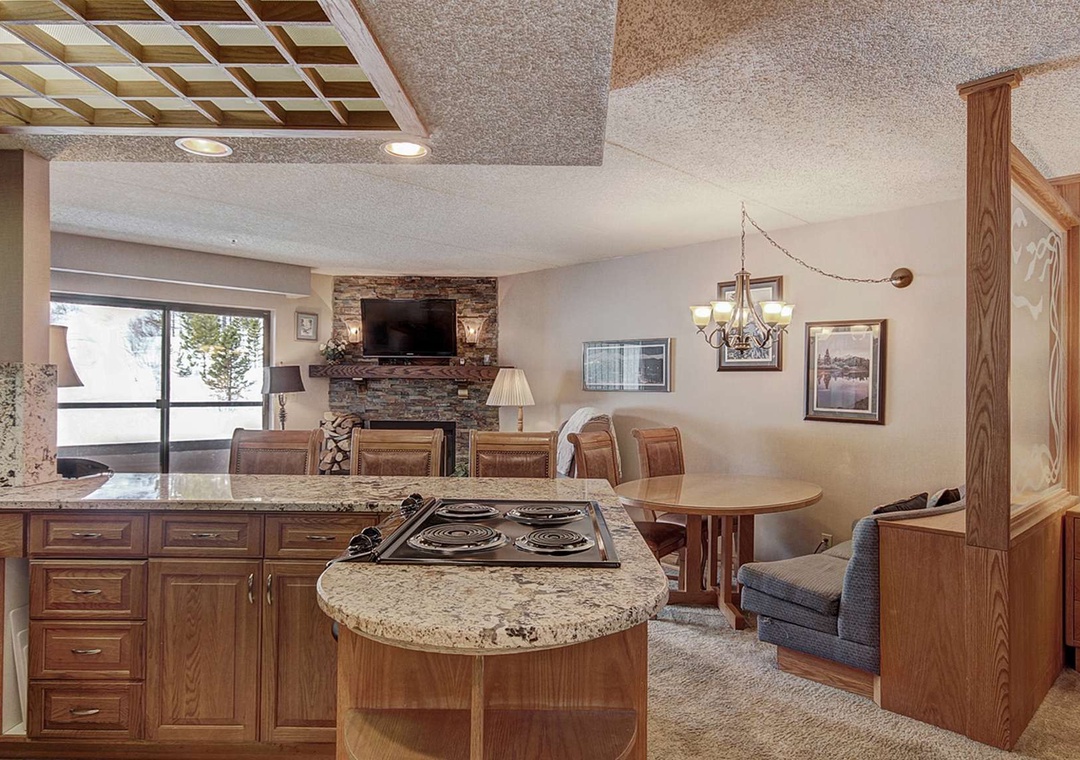 The condo has an easy and comfortable design. The kitchen is open to the living and dining area. The fireplace is an added level of comfort. The view is of nature, a snow and tree covered landscape. We enjoyed a quiet, relaxing stay in this comfortable and clean condo. We called for additional firewood and it was delivered promptly to the room. I especially love the ski storage and ski in/out convenience. The whole experience was seamless from check in to check out.- Reviewed On: 2/16/2019