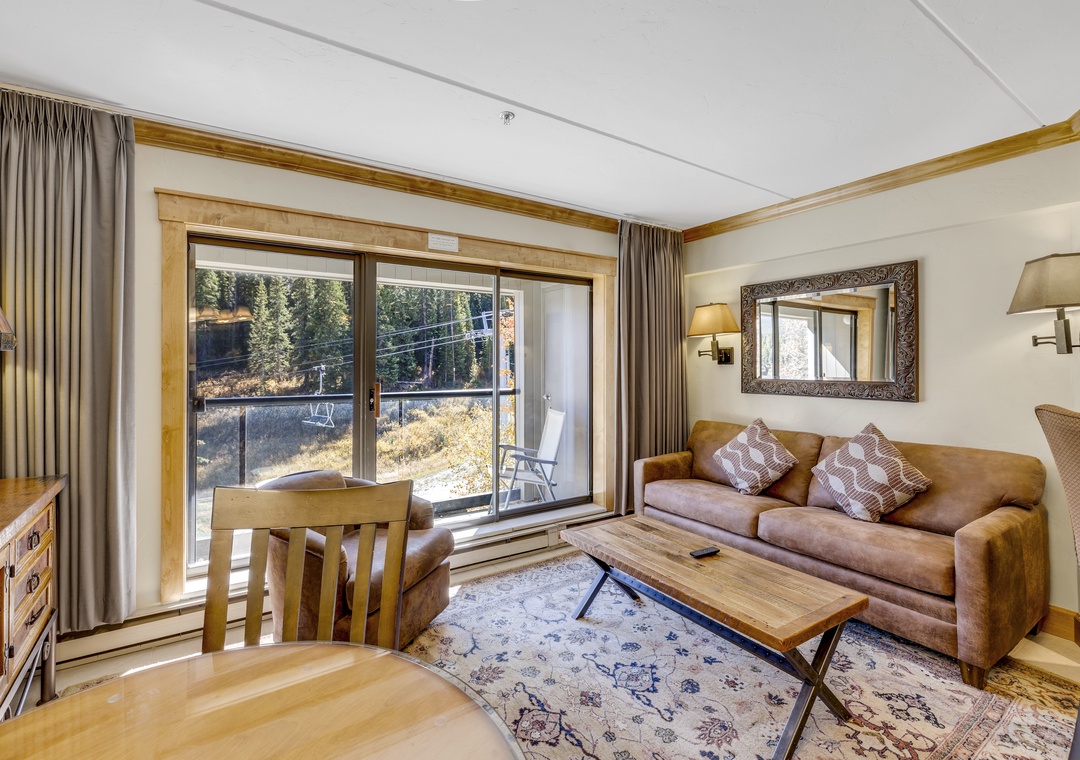This cozy studio and 1 bath has all the basic essentials for a comfortable vacation. A queen bed as well as a sleeper sofa providing ample space for your group. Daily room service allows your vacation to feel effortless and provides you the time to adventure with ease. Even more, you can view the Quicksilver lift from this unit, allowing you the most ideal start to your day of skiing.