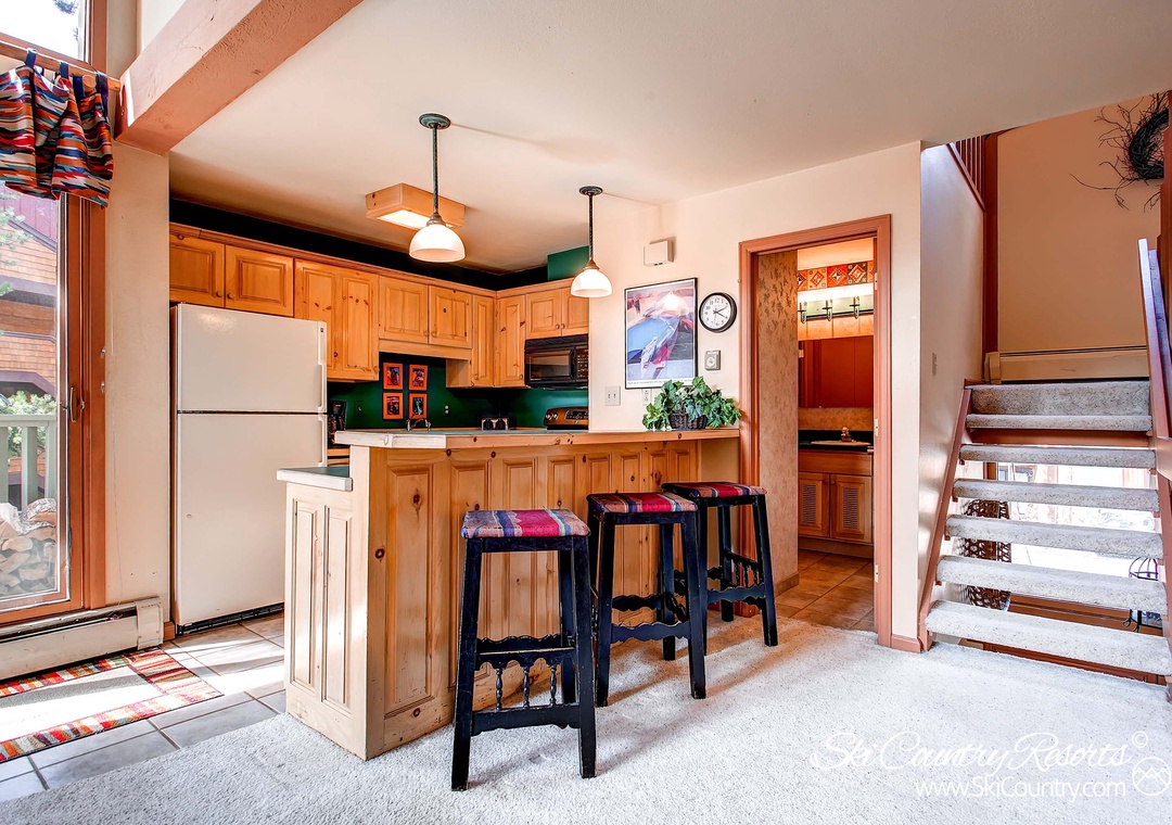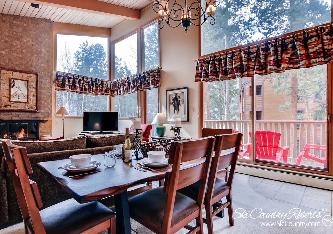 The well-equipped kitchen features all the necessary appliances, including a dishwasher, coffee maker, toaster, stove, oven, microwave and refrigerator. Cooking and dining utensils, dishware, and glassware are also provided to allow the ability to prepare and enjoy any home-cooked meals from the comfort of your Breckenridge home away from home. Gather around the new dining table with room for six, or opt for a quick meal at the breakfast bar (ideal for fueling up before hitting the slopes) with additional seating for three, .