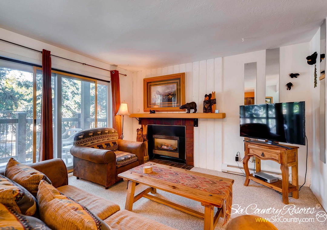 As you step into the unit, you'll be greeted by a warm and inviting atmosphere inspired by the surrounding mountains. Unwind on the plush, oversized couch in the living room, where a 43" Samsung Smart TV awaits to entertain you. Alternatively, cozy up with a good book in front of the charming gas fireplace, enveloping yourself in its comforting warmth.