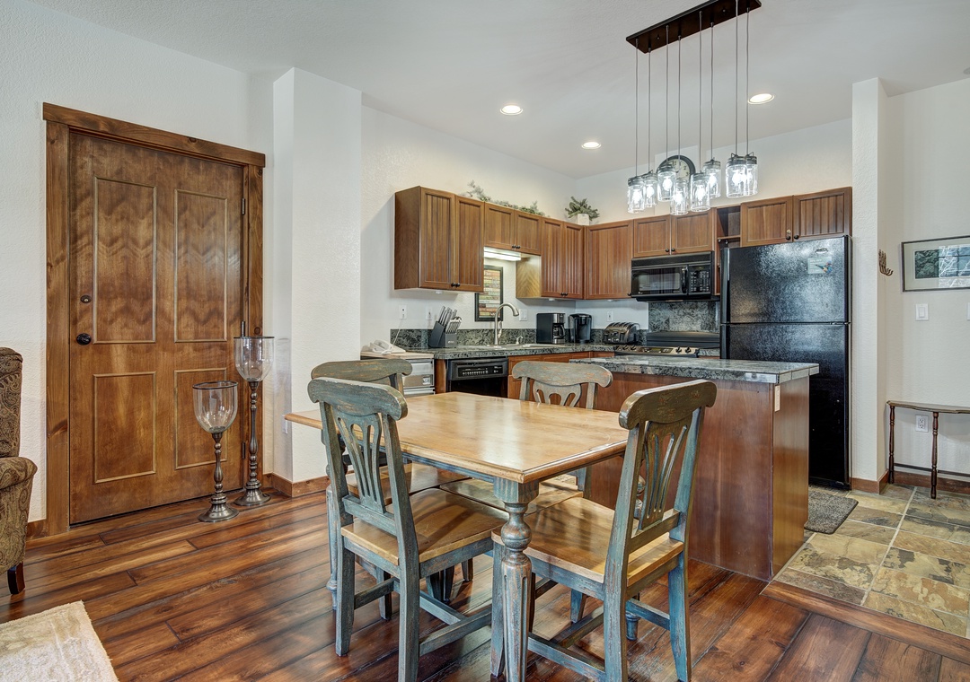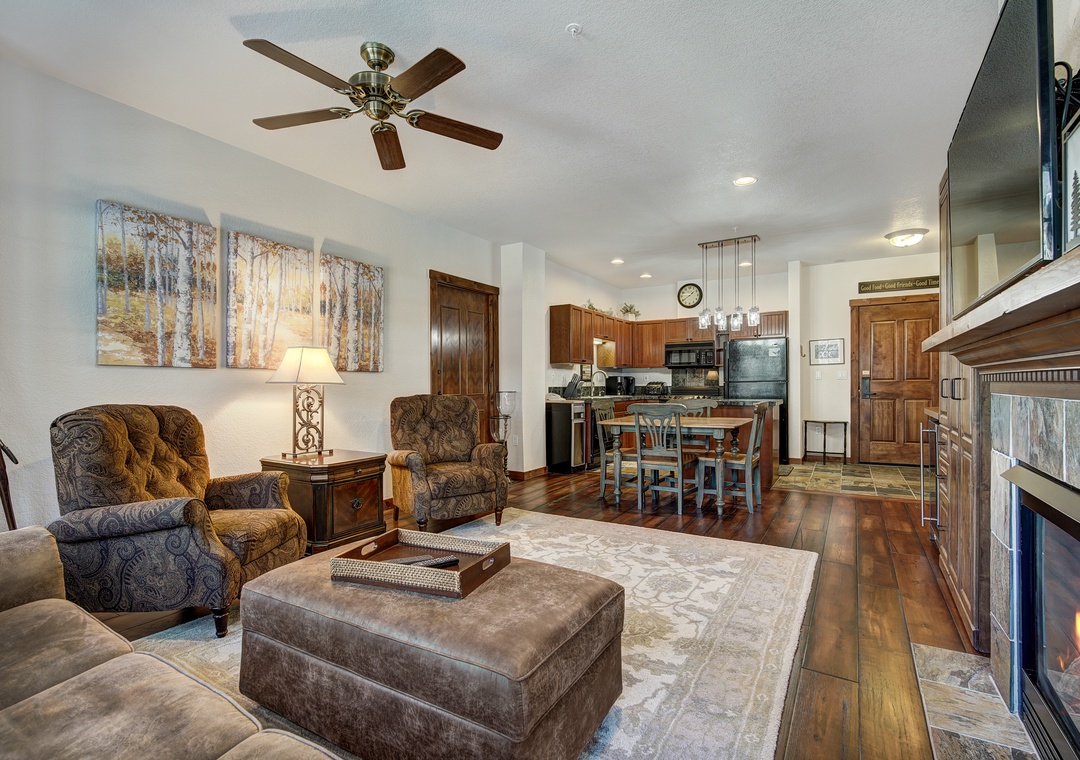 Perfectly located, this sunny ski-in/ski-out Main Street Station condo overlooks the scenic Blue River. You can't beat the amenities and comfort in this well-appointed unit AND you can walk to the shops and restaurants along Historic Main Street in Breckenridge. This stunning condo sleeps 4 and features a living room with a fireplace, updated wood floors, a custom built wet bar with a wine cooler, large five piece bathroom, and more! With a fully stocked kitchen and dining table, you can enjoy meals from the comfort of your condo.