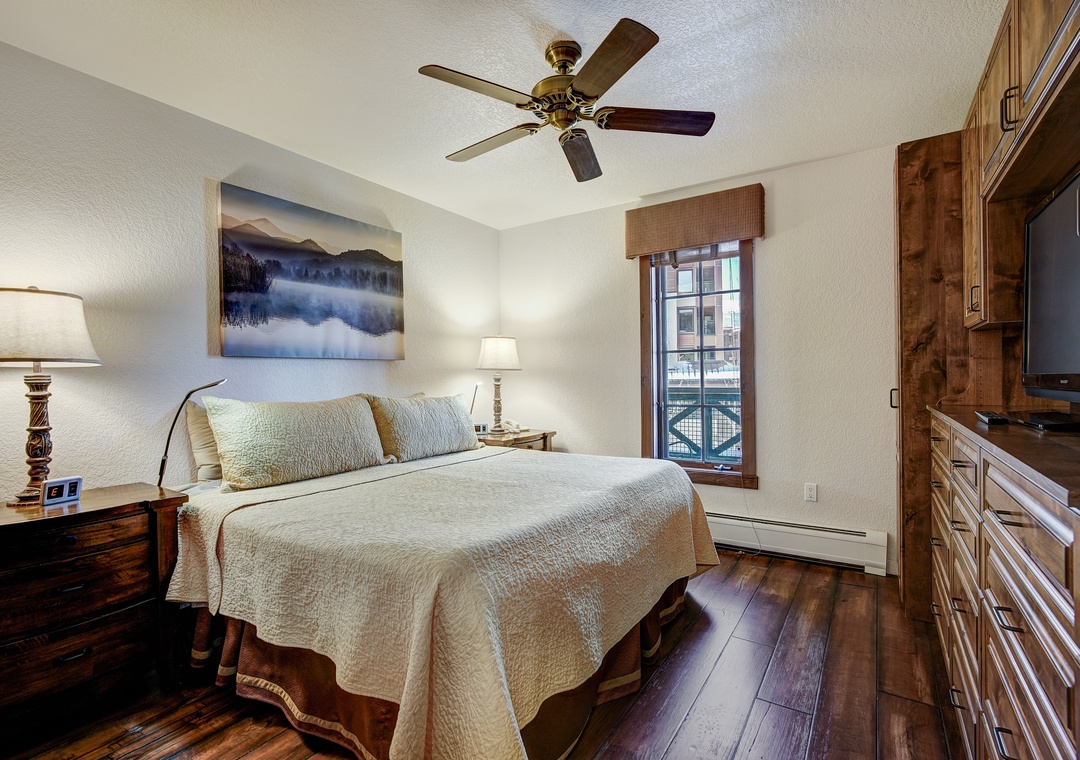 Enjoy the views of the Blue River from your own private balcony. With room to spread out, there is a bedroom with a king bed and plenty of storage and there's a fold out sleeper sofa in the living room - perfect for families or couples. Relax and watch TV in the living room or the bedroom and take advantage of the free Wi-Fi.