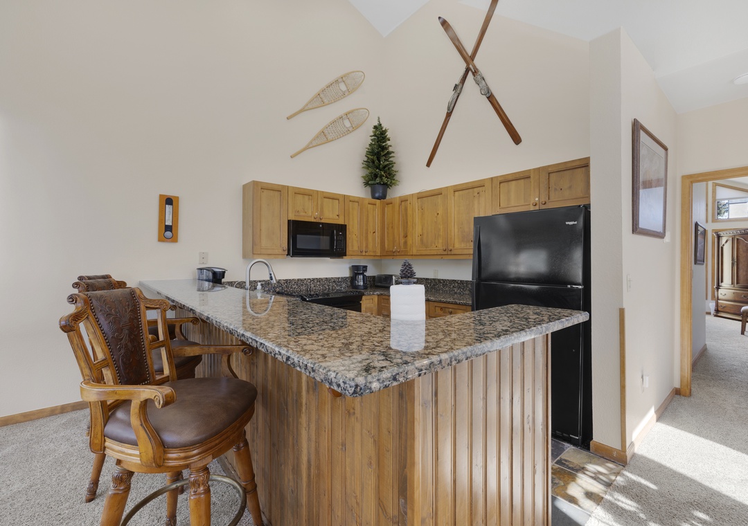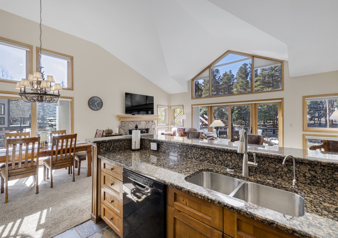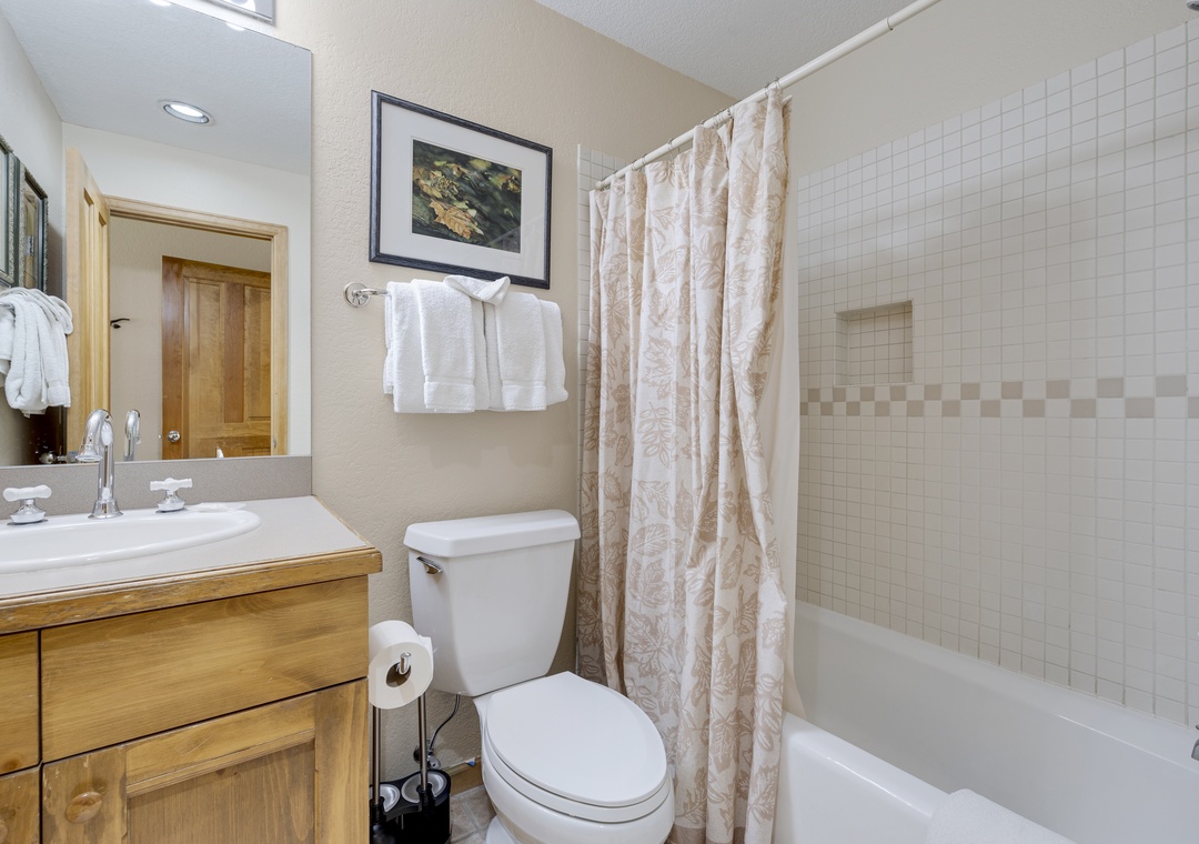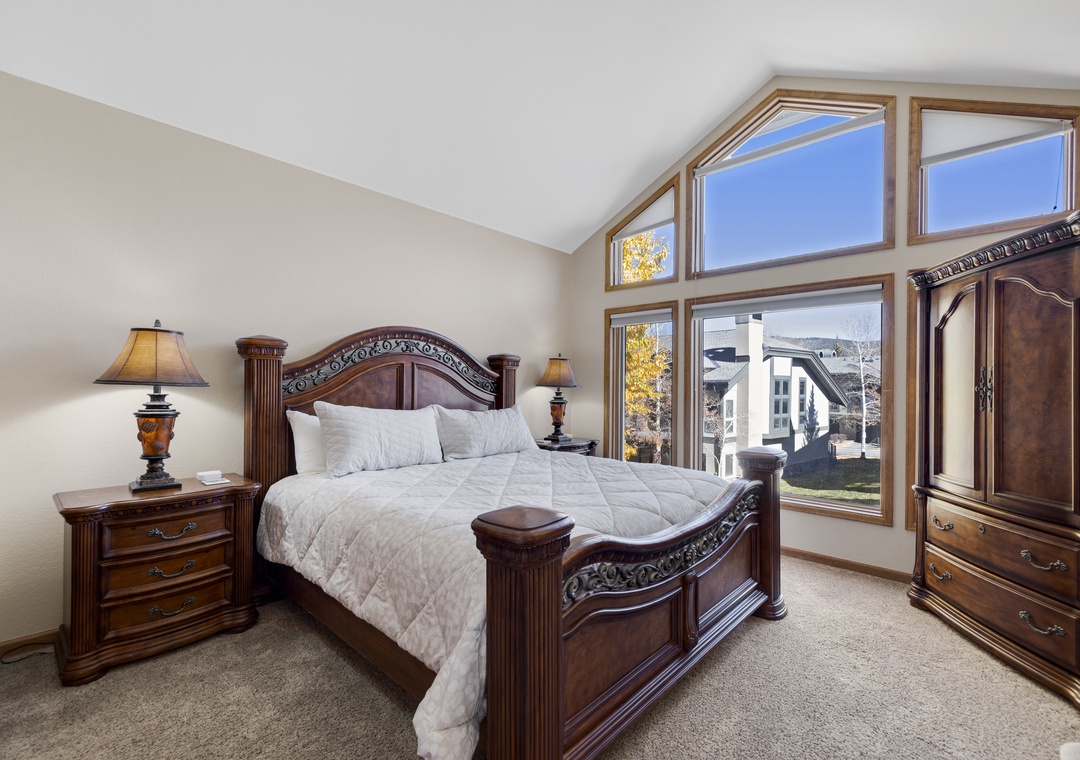 Each bedroom in this three-floor townhome has its own private bathroom, making everyone's stay comfortable. The master bedroom bathroom has a large, jetted tub to relax after a long day. The bunk bedroom, with a triple bunk bed, will make the kids excited for their own space to unwind. The main floor contains an open layout providing an abundance of space for you and your family. A large dining room table making mealtime effortless. Finally, end your day of adventures next to the stunning fireplace, an ideal ending to a day of skiing.