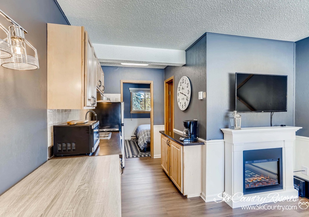 After an exhilarating day exploring the mountains, you'll appreciate the comfort and warmth of this well-appointed unit, complete with an electric fireplace and well stocked kitchenette. The bedroom provides a cozy retreat after a long day, featuring a comfortable bed and soothing decor, while the bathroom offers modern fixtures and a refreshing shower/tub combination to help you rejuvenate.