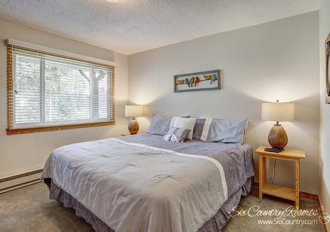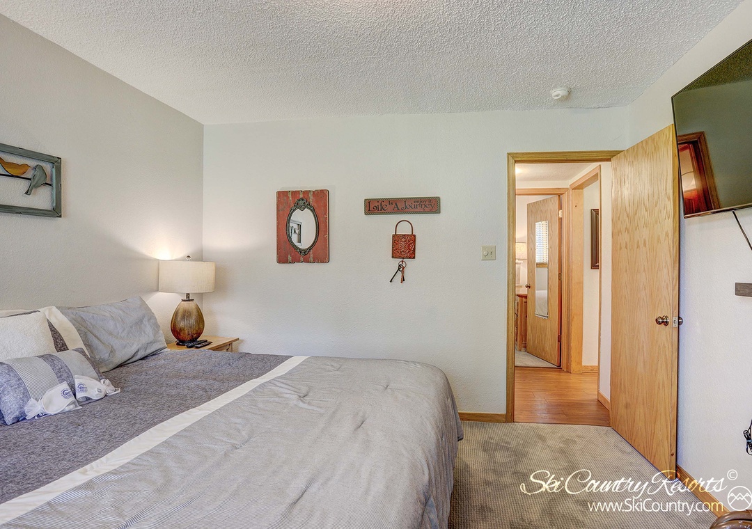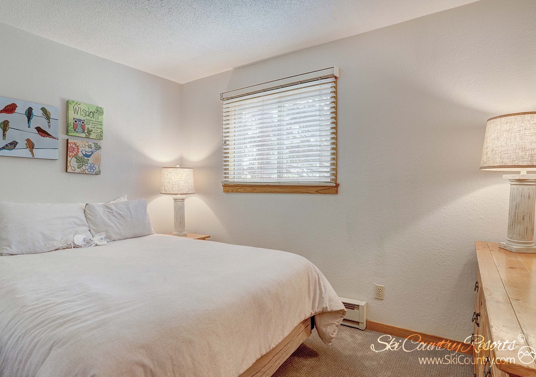 This 2 Bedroom, 1 Bath, 600-square-foot condo combines rustic elegance with modern amenities. The master bedroom serves as a private retreat, featuring a luxurious King bed, a spacious full-size armoire and a state-of-the-art flat-screen TV. The second bedroom is equally inviting with its sumptuous Queen bed and ample full-size dresser, making it a perfect haven to recharge.