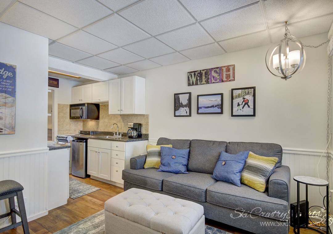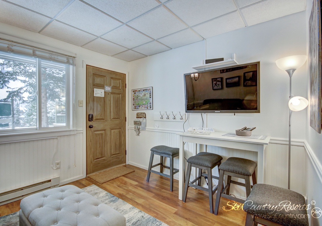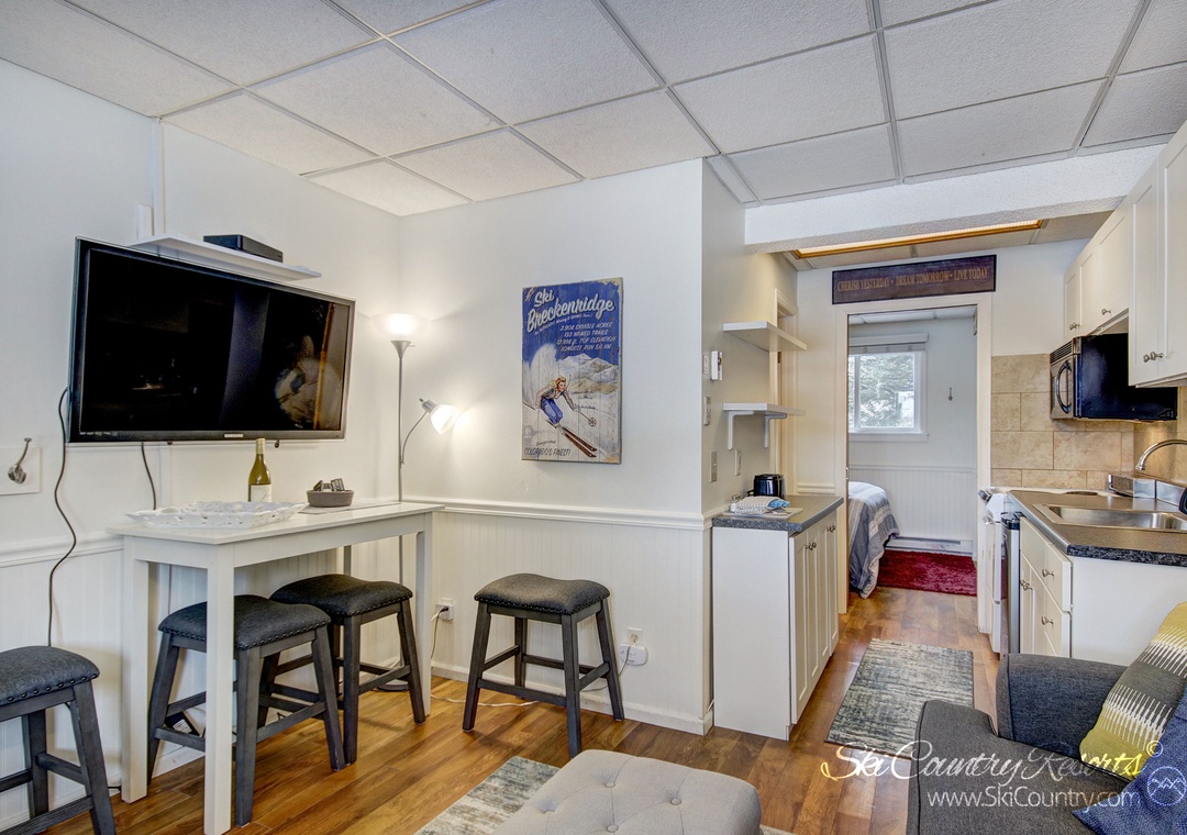 Enjoy ground floor access to this one bedroom, one-bathroom condo with well thought out touches throughout. The brand new, luxury vinyl flooring offers easy cleanup for any 'outdoors' you may bring 'indoors' and the recently refurbished kitchenette provides the perfect cooking quarters for a quick meal between ski runs. Equipped with mini fridge, stovetop, oven, microwave and all the cooking and dining utensils needed to prepare a home cooked meal during your stay.