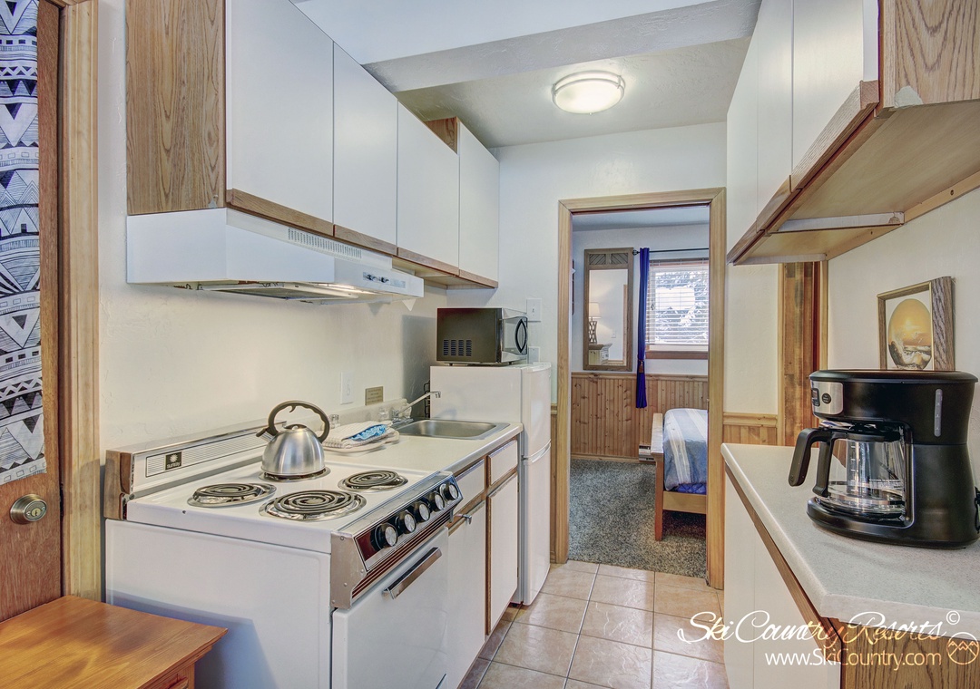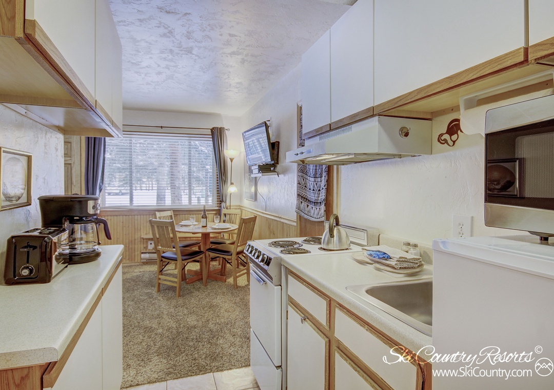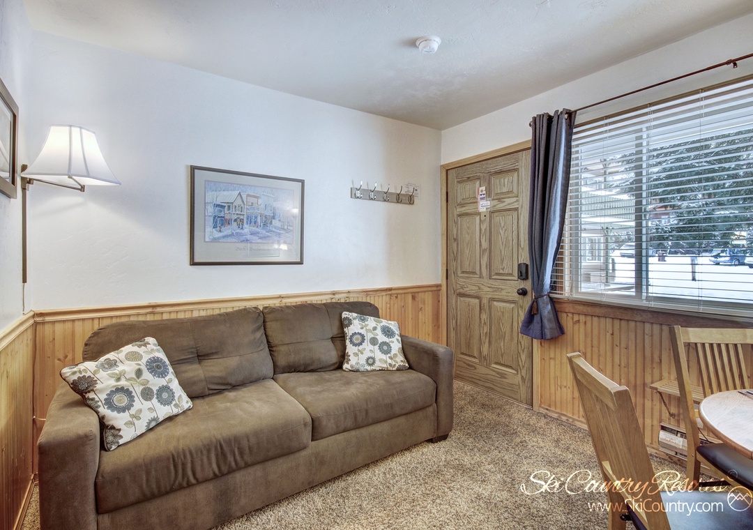 Step inside this first-floor, recently updated unit and you'll find yourself surrounded with mountain-cabin warmth. The living area is adorned with plush carpeting and sleek tile. Sink into the Queen Sofa Sleeper (with new memory foam mattress) to enjoy your favorite film or TV series on the 16" flat-screen TV, equipped with cable and DVD.