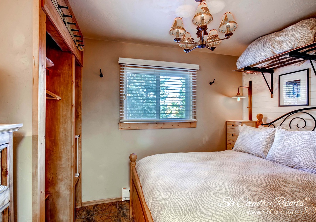 The bathroom is a masterpiece of design, featuring a luxurious tile shower with an oversized rain showerhead—an indulgent escape after a day of adventure. And the bedroom offers a serene sanctuary with ample storage, making it easy to keep your space organized and clutter-free. Rest easy on the plush pillow-top mattress of the Queen-sized four-poster bed.
