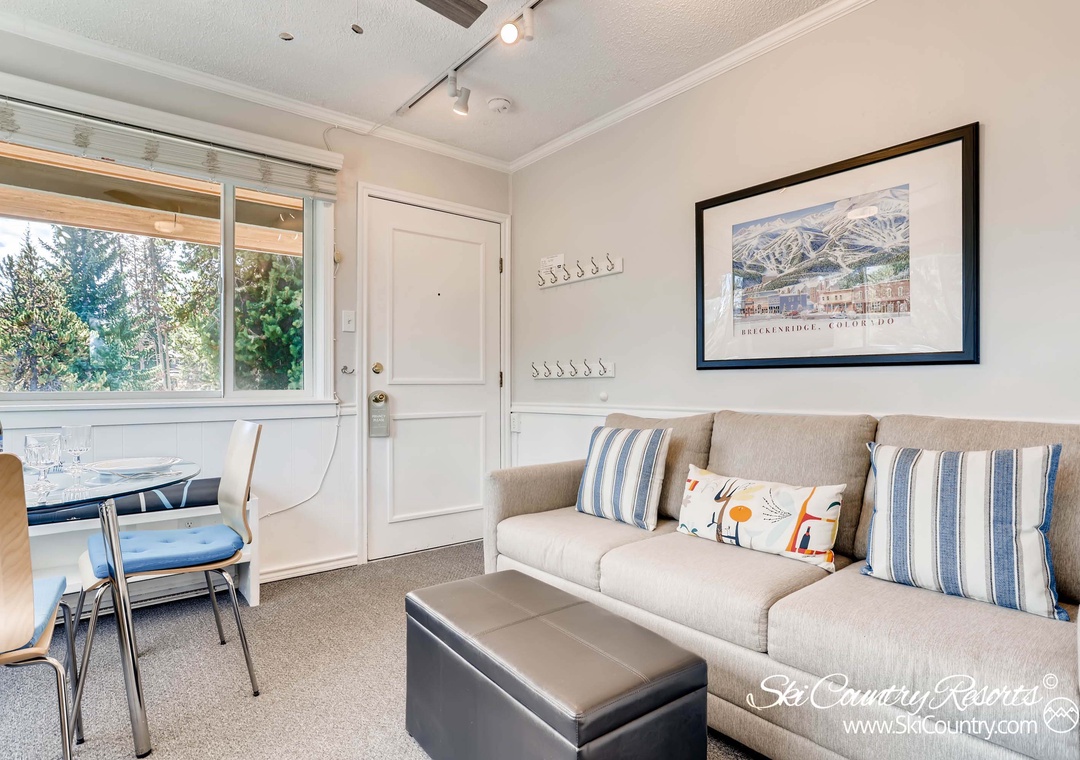 This was our first time to Breckenridge and we really enjoyed our stay. Very convenient with their private shuttle, ski lockers outside the condo, and an easy 2 block walk to the main street which we did most nights for dinner. Although it's technically ski in/out, we were beginners and didn't feel comfortable doing that. I also couldn't get the tv to work properly, but that wasn't important to us. It was warm inside, with a beautiful view. Snug, but perfect for two people who want to be together but have the option of being in different rooms some of the time.- Reviewed On: 1/6/2018