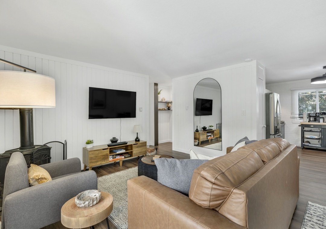 Step inside to a beautiful open layout with a stunning modern design. A fully stocked kitchen and dining area making mealtime with your family or group effortless. The master bedroom is tastefully designed, and the bunk bedroom is suited for kids and adults alike. Finally, complete your day of adventures cozied up near the welcoming and serene fireplace, a perfect end to a perfect day!