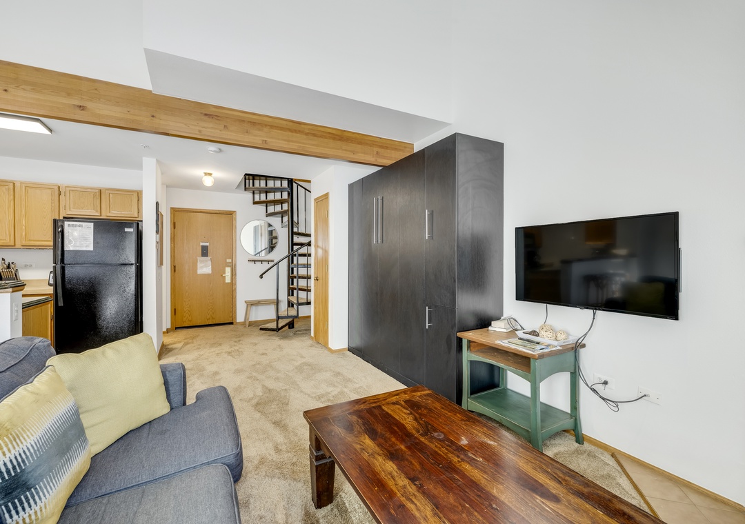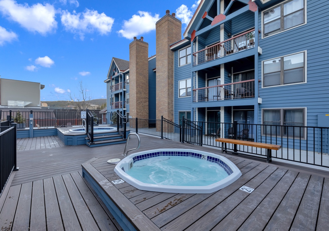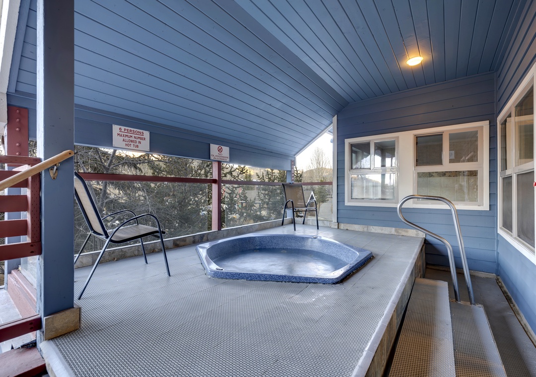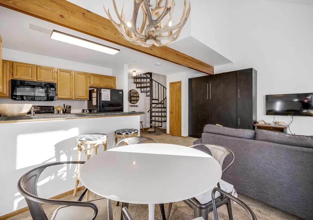 The interior will welcome you with a large common area, fitting for all groups and families alike. A fully stocked kitchen making mealtime effortless. A private sleeping area with attached bathroom in the upstairs loft offers a separate space to relax and decompress. Even more, there is a washer and dryer in the loft area, a bonus amenity to make your vacation as smooth as possible. Finally, step outside the balcony where you will be within steps of the exterior hot tubs and can take in views of the beautiful mountains of Breckenridge.
