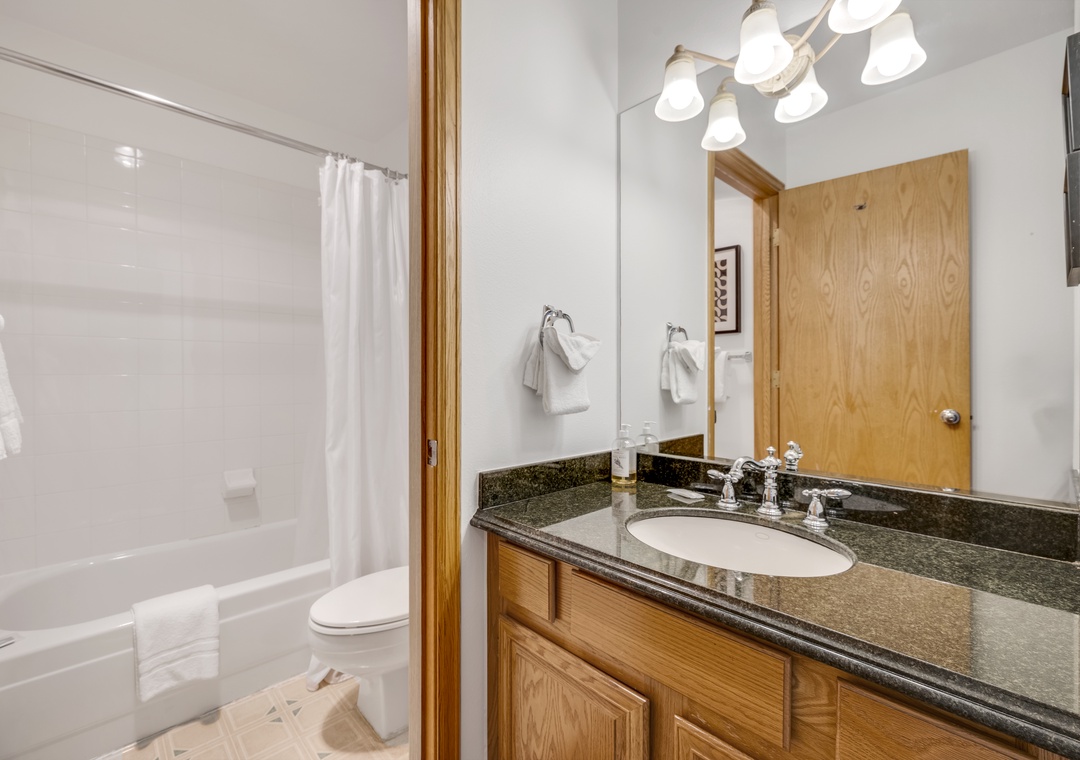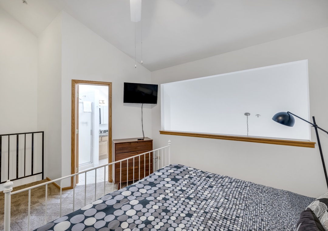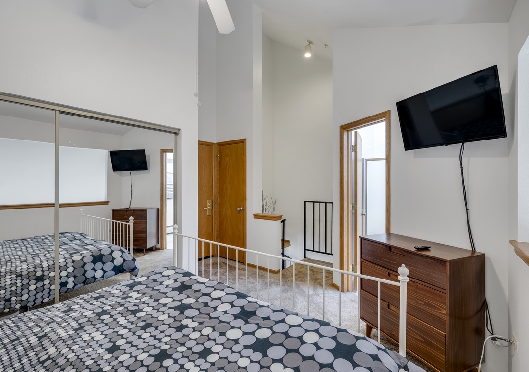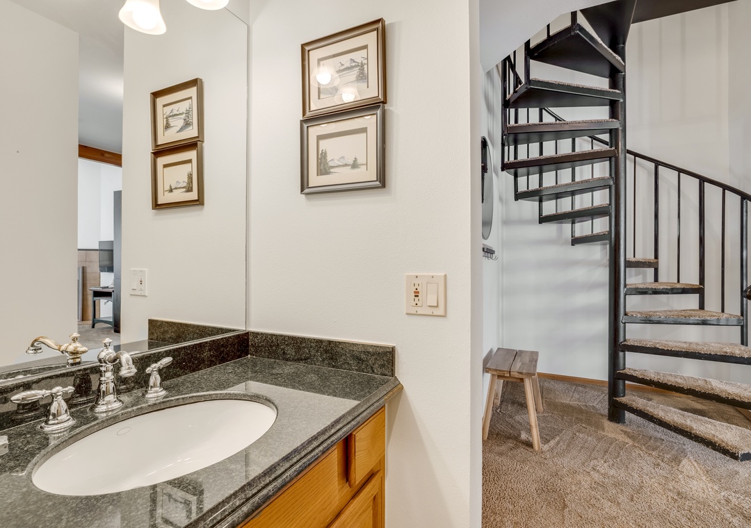 The interior will welcome you with a large common area, fitting for all groups and families alike. A fully stocked kitchen making mealtime effortless. A private sleeping area with attached bathroom in the upstairs loft offers a separate space to relax and decompress. Even more, there is a washer and dryer in the loft area, a bonus amenity to make your vacation as smooth as possible. Finally, step outside the balcony where you will be within steps of the exterior hot tubs and can take in views of the beautiful mountains of Breckenridge.