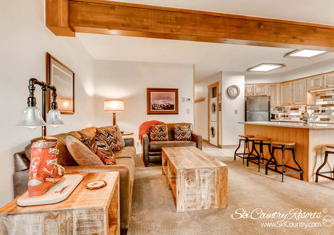 This expansive and recently renovated condominium (managed by Ski Country Resorts Vacation Rentals) is located in a prime location at the base of the Four O'Clock ski run in the heart of Downtown Breckenridge. This spacious two-bedroom, two-bathroom retreat is the perfect choice for your Rocky Mountain retreat. Situated just one block away from the Historic Main Street, you'll have easy access to the town's vibrant shops, restaurants, and entertainment options. Additionally, the Breckenridge Free Ride shuttle stop is just steps away, providing convenient transportation to explore all that the surrounding Summit County, Colorado's Playground, has to offer.