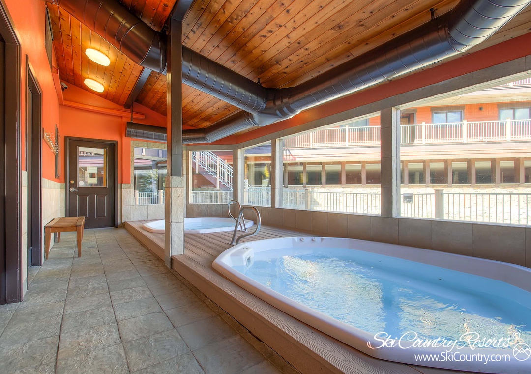 As guest of the Sawmill Creek complex, you'll have access to a range of amenities. Enjoy the common deck, featuring a year-round gas grill and patio furniture, perfect for enjoying outdoor meals and gatherings. Covered parking is available for one car, and an elevator provides easy access to the unit. Additionally, the complex offers two oversized indoor hot tubs (available seasonally, closed in spring and fall) for ultimate relaxation. The highlight of the property complex is the picturesque Sawmill Creek, flowing through the middle of the complex and cascading over a waterfall into a tranquil pond, creating an idyllic mountain setting.