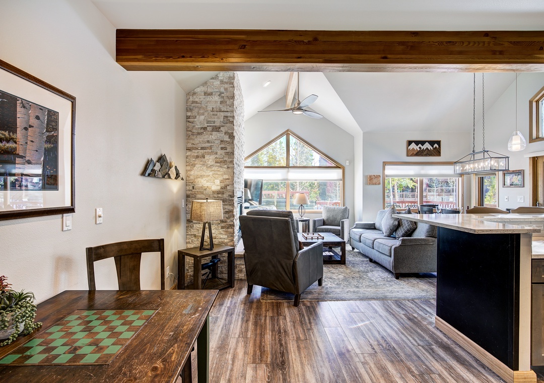 This multi-level townhome has undergone a recent remodel (January 2022) and has been completely refurnished (July 2023). Tall Pines 97 is an absolute must for your ski vacation or Breckenridge retreat. Boasting 3 bedrooms, a den and three and a half bathrooms, it is equipped with every amenity you could desire. The living room, adorned with brand new furnishings, revolves around an immense gas fireplace, creating a cozy and inviting atmosphere. A full entertainment center features a 55-inch flat screen TV, allowing you to enjoy your choice of programming. Alternatively, curl up with a cup of cocoa on the plush recliner couch and bask in the warmth of the fireplace while relishing in the captivating views of the ski slopes from the expansive windows encompassing the main living and dining area. In both winter and summer, soak up the mountain sunshine on the sweeping south-facing deck.