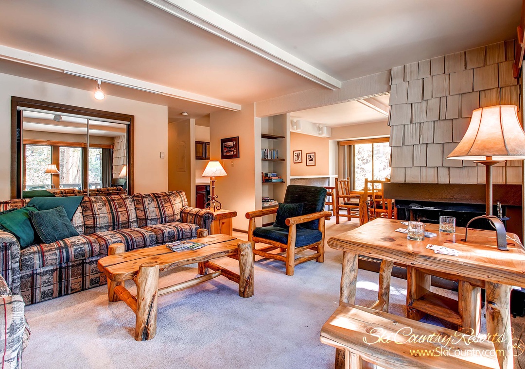 You will enjoy staying in this sunny, first floor, one bedroom and two bathrooms unit which provides beautiful views of the Blue River. The unit features a fully equipped kitchen with all cooking and dining utensils, as well as the rustic, mountain inspired six person dining room table. If your group requires more space, utilize the kitchen countertop bar with seating for three.