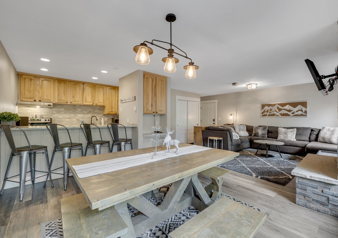Welcome to Tannenbaum II Unit 22! Discover the perfect blend of comfort and style in this two-bedroom three-bathroom getaway. This spacious and modern retreat offers plenty of room for families and groups. Each bedroom has its own attached bathroom, and this property offers a large dining and living area. After a long day of skiing, you can relax by the fireplace and enjoy views of mountain lifestyle. The guest room features a unique "triple bunkbed" where your kids can pick from three levels to end their night.