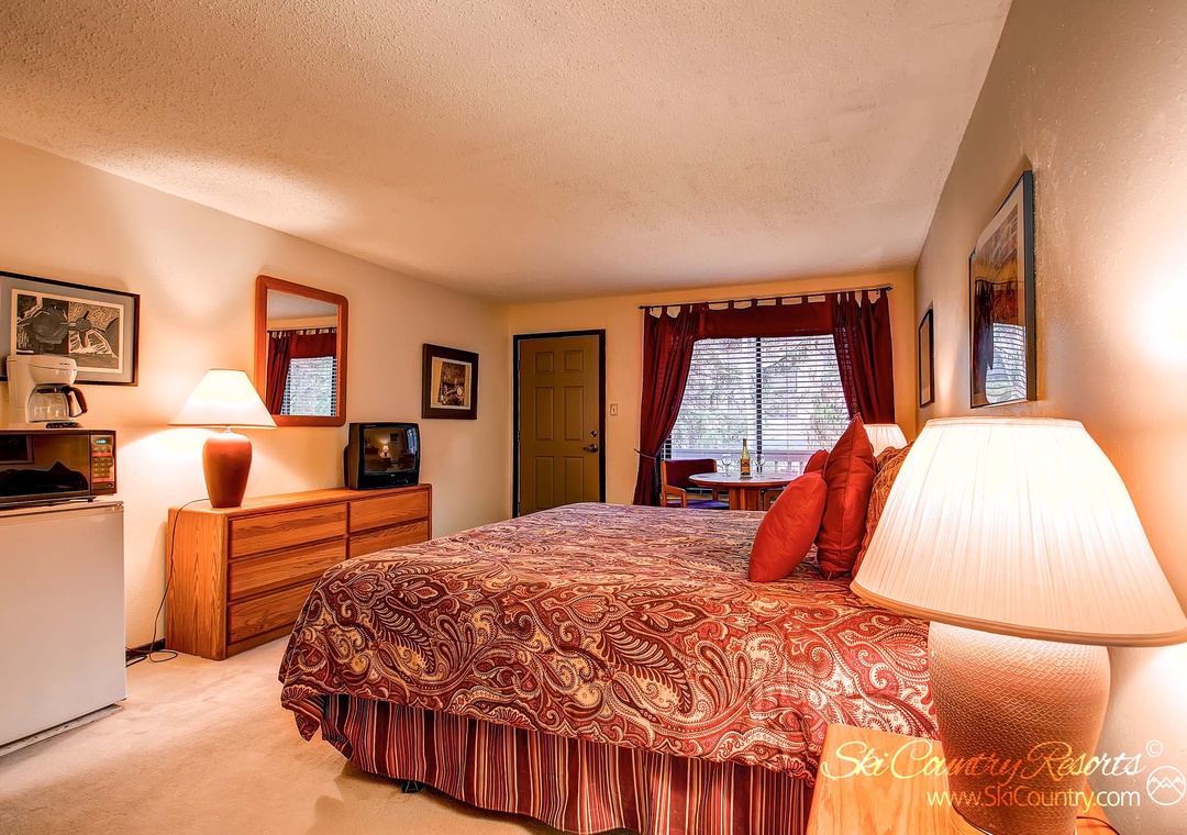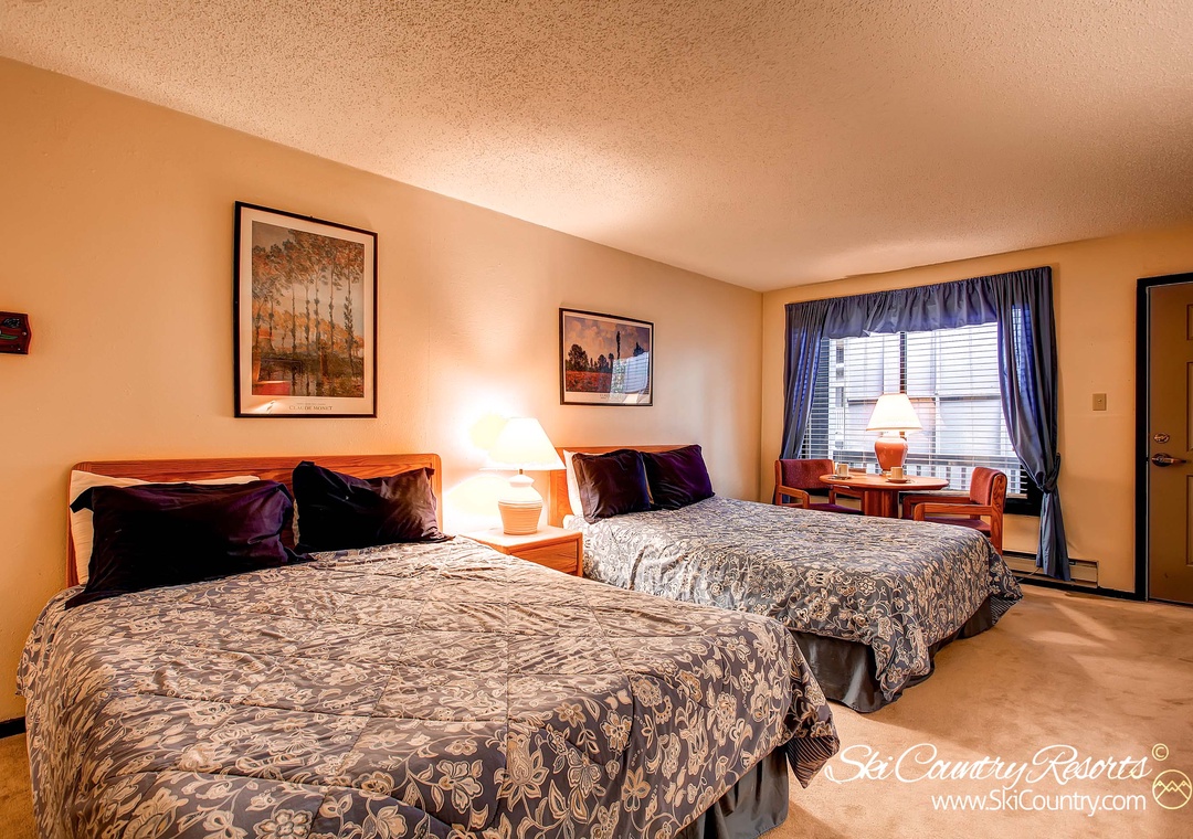 The bedrooms, one furnished with King Bed and the other with two Queens, include a 19" TV each as well as mini fridge, coffee maker and closet/dresser for all storage needs. Stay connected with high-speed internet and take advantage of the on-site coin-operated laundry facility for added convenience.