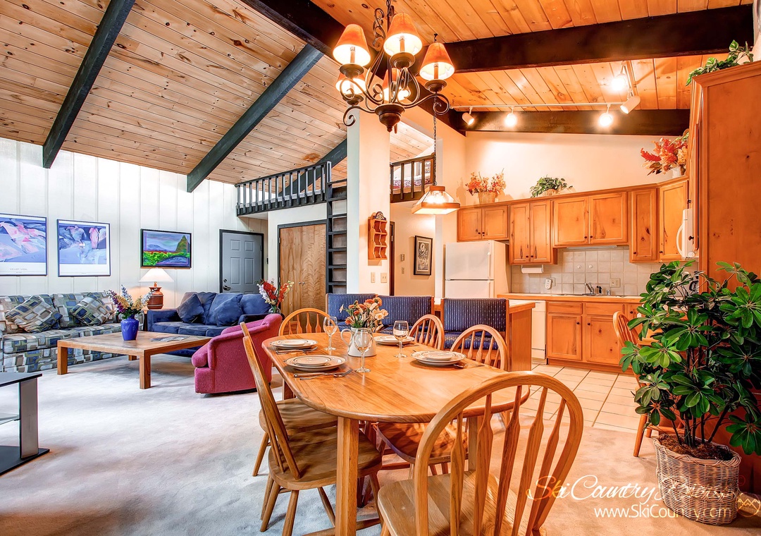 Upon entering this spacious top-floor unit, you'll be greeted by an open layout that exemplifies modern mountain living at its finest. The two bedrooms, and additional ladder loft, ensure ample space for your group to spread out and unwind. And with three well-appointed full bathrooms, convenience is never compromised.
