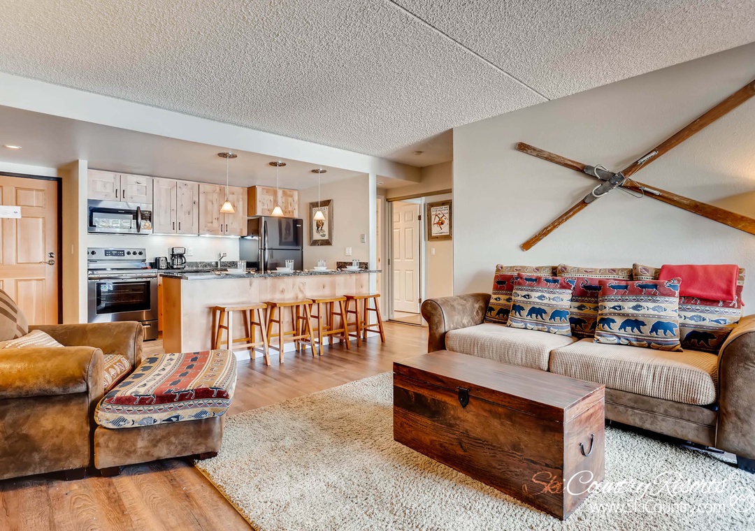 As you step inside, you'll be greeted by a warm and welcoming atmosphere. The first-floor location provides easy ski-in/ski-out access, making it a dream come true for winter sports enthusiasts. Meanwhile, this 560 square foot unit has been thoughtfully designed to capture the enchanting ski town feel of Breckenridge.