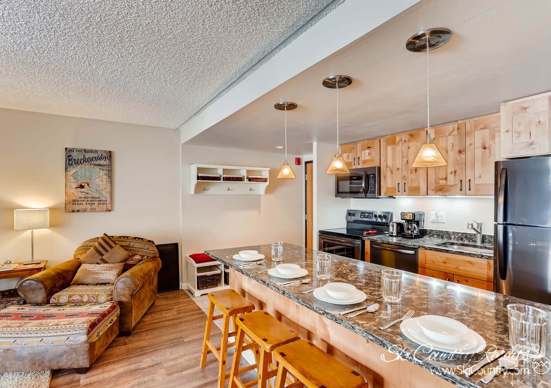 Welcome to your cozy ski in/ski out mountain retreat - right in the heart of Breckenridge! Trails End Condo 105 (managed by Ski Country Resorts Vacation Rentals) is a charming and inviting one-bedroom, one-bathroom unit that offers the perfect blend of comfort and convenience.