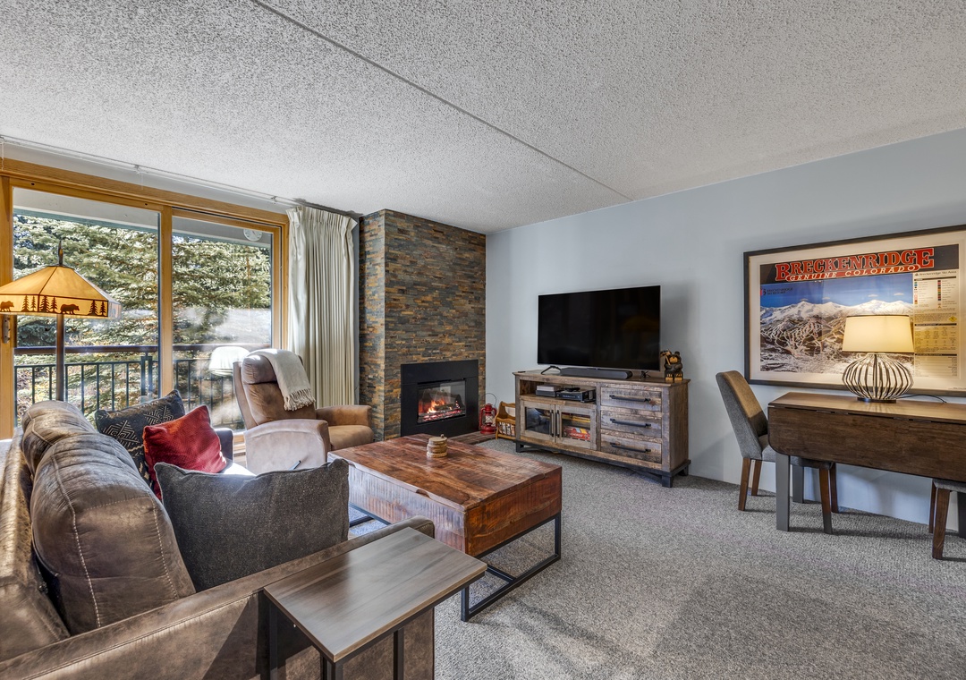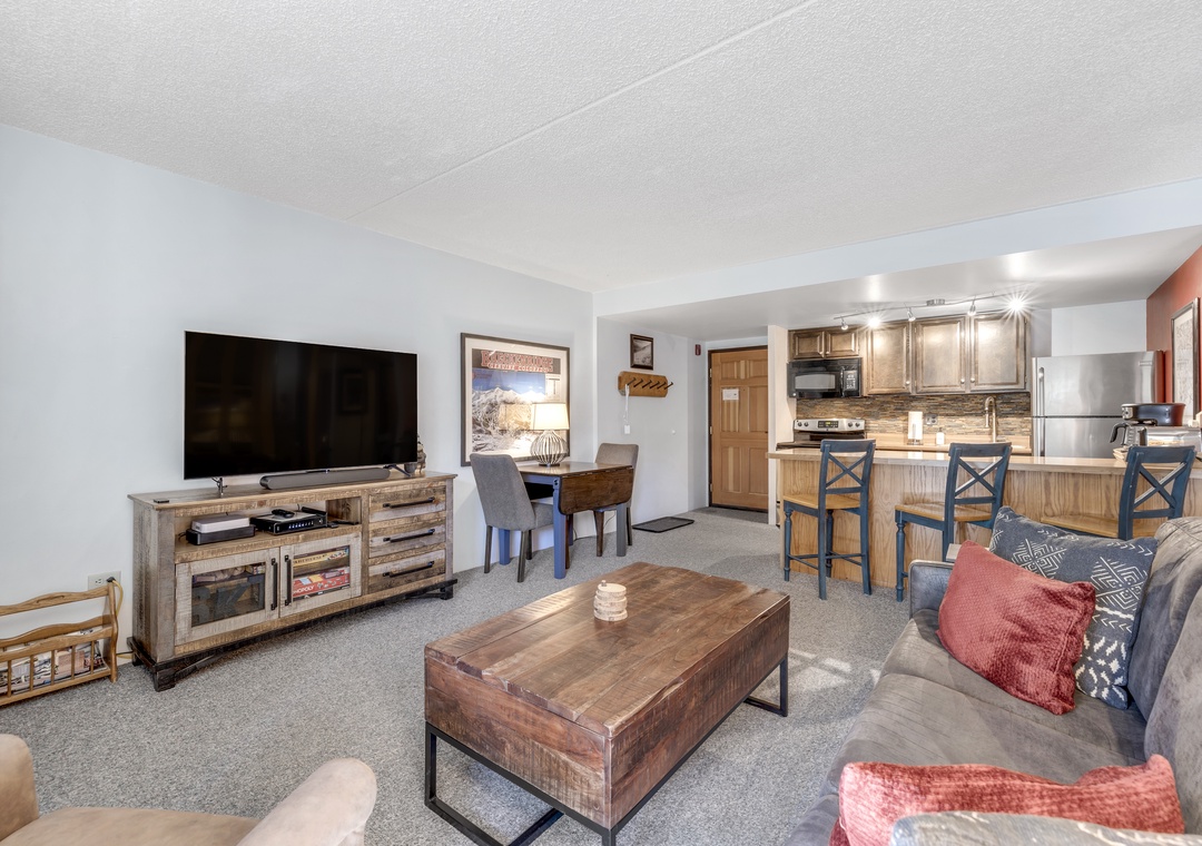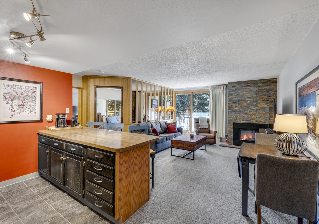 Located on the first floor, this unit combines the perfect blend of mountain appeal and comfort. A fully equipped kitchen makes mealtime easy for families and groups alike. The recently remodeled bathroom allowing you to prep for your day of adventures with ease. A large living room TV to enjoy all your favorite movies and shows. Finish your day by cozying up to the stunning fireplace, a perfect end after a full day of activities.