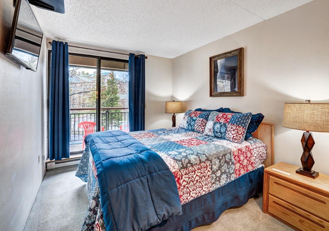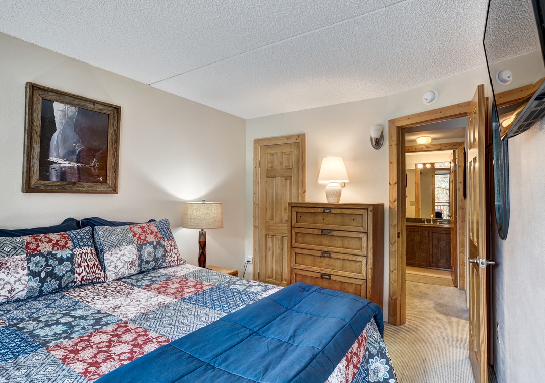 After a day of conquering the Breckenridge mountain terrain on skis or hiking boots, retreat to the private bedroom housing a comfortable Queen bed. Before drifting off into dreamland, peruse your nighttime entertainment options on the second flat-screen TV, conveniently mounted across from your plush, pillow-top haven.