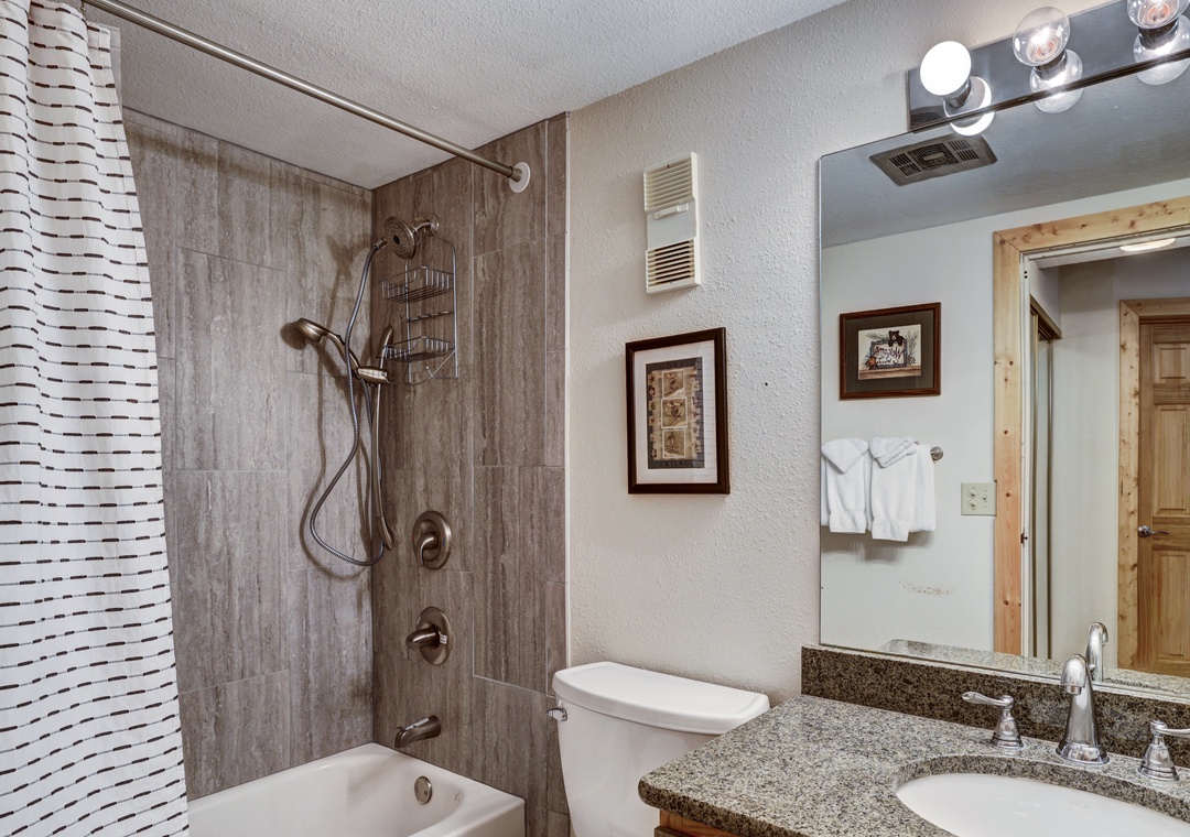 The immaculately decorated and updated bathroom is a sanctuary in itself, featuring modern touches and a high-pressure shower head/handheld combo. Soothe your senses with a steamy shower or a relaxing bath, letting go of any muscle aches acquired during your adventures.