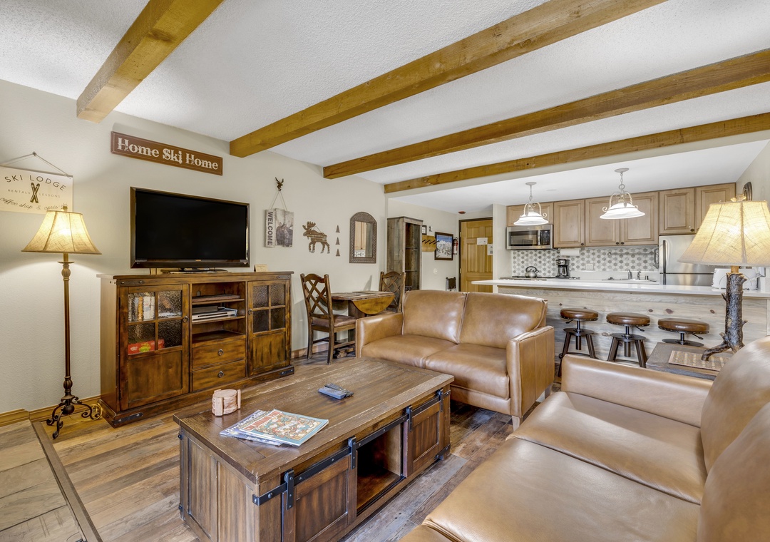 NEWLY REMODELED AS OF FALL 2025! Brand new flooring, fireplace, couch, barstools, and stove! Welcome to your cozy retreat nestled in the heart of Breckenridge, Colorado's winter wonderland! This ski in/out, one-bedroom condominium offers the ultimate convenience for your alpine adventures.