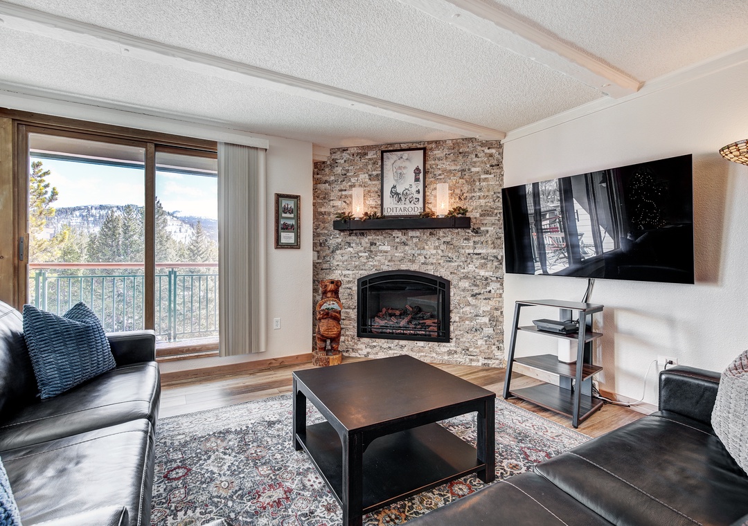 After a day of exploring the stunning outdoors, sink into the one of the two couches in the beautiful living room. Whether you're watching a movie on the large flat-screen TV, using the DVR, or immersing yourself in a good book with a cup of hot cocoa, the gas fireplace will envelope you in a comforting warmth, making you feel right at home. On sunny days and during the exquisite summer months, step outside onto your private deck and marvel at the unique mountain views that surround you.