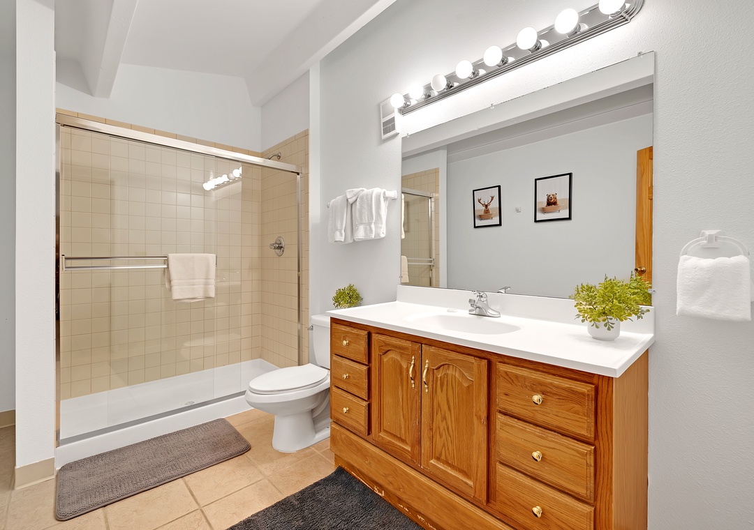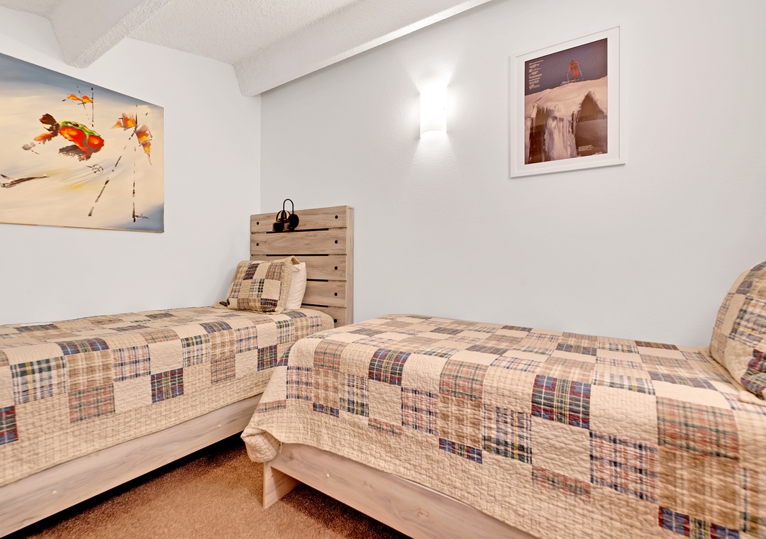 Also upstairs, the third bedroom offers a secluded alcove furnished with two Twin beds. Finally, the fourth bedroom, a compact enclave offering its own little retreat, features a Twin Bunk bed and additional Twin bed. Combined, these sleeping quarters, along with Queen sofa sleeper in the living room, ensure that the unit can sleep up to twelve guests in comfort. And the three opulent bathrooms, replete with new stone countertops, await to wash away the exertions of the day with a steaming shower or a languid bath.