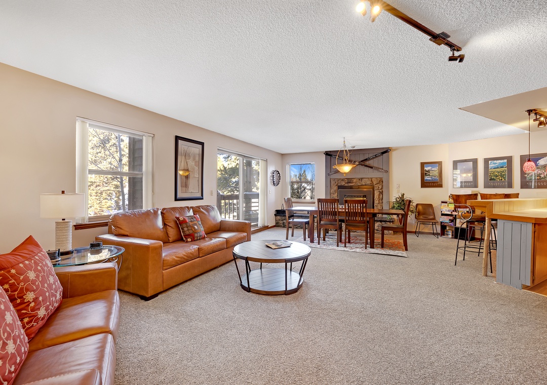 Designed with families in mind, this mountain retreat offers an inviting and spacious open living area that seamlessly integrates your entertainment, cooking, and dining spaces. Sink into the plush leather couches while immersing yourself in your favorite movie on the impressive 42" flat-screen TV. The fully equipped kitchen beckons you to showcase your culinary skills, while the gas fireplace envelops you in warmth as you share stories of your exhilarating Breckenridge adventures over a delightful meal with your loved ones. Step out onto the private outdoor balcony, where seating for two invites you to bask in the awe-inspiring views of the majestic forest and towering mountains. Witness nature's marvels, from passing wildlife to intrepid hikers, skiers, and snowboarders.