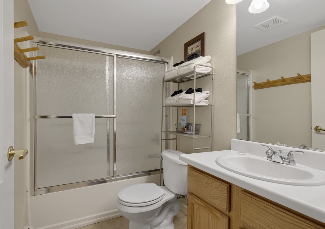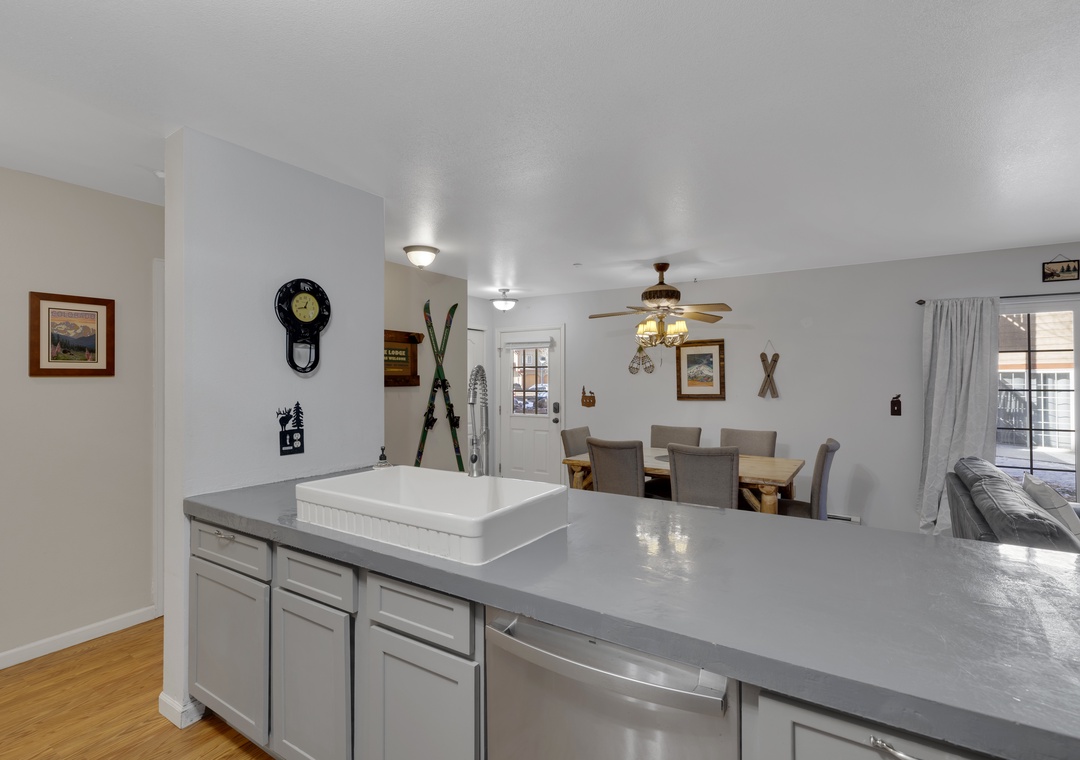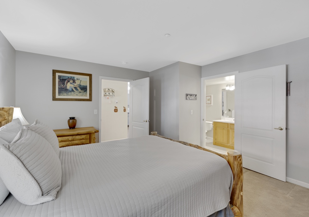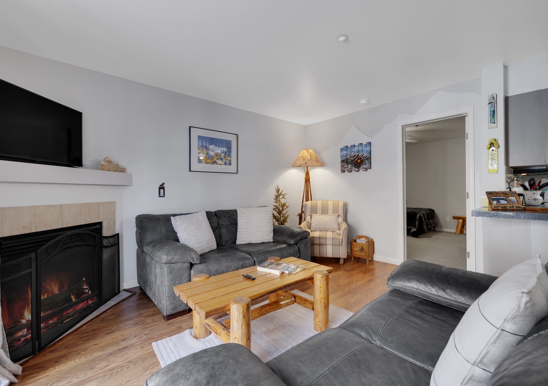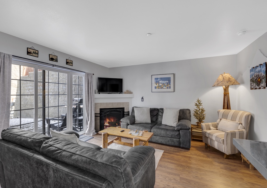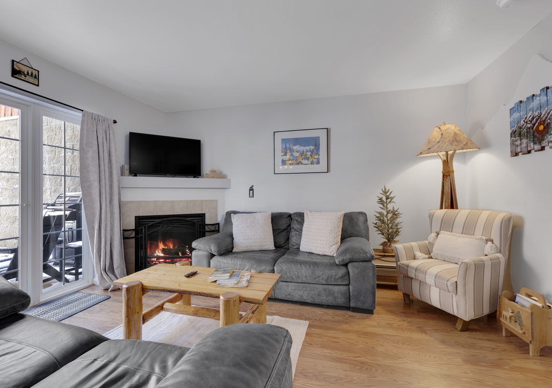 Inside you will be greeted by a spacious and open layout. A full dining area and fully stocked kitchen, making mealtime for you and your family effortless. Both bedrooms have attached bathrooms, so everyone has the space they deserve. A private patio with grill providing extra space for your group to create memories. Even more, complete your day cozied up near the fireplace, a perfect end to your day of adventures.