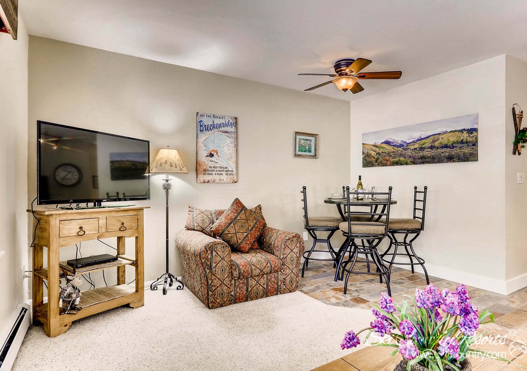 Located within the Wildwood Suites Condominiums Complex, this condo offers more than just a superb location. Nestled beneath towering pines and evergreens and adjacent to a year-round mountain stream, it presents an idyllic four-season escape right on the edge of the Four O'Clock Ski Run in Breckenridge. With Main Street just steps away, you can spend your afternoons leisurely strolling, indulging in delectable dining, shopping for unique treasures, and exploring all the wonders that Breckenridge has to offer. The Wildwood Suites building also provides additional amenities for your enjoyment, including complimentary WiFi, a rejuvenating sauna, convenient on-site coin-operated laundry facilities, and a serene common area featuring a cozy gas fireplace.