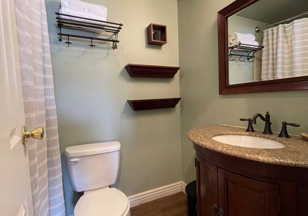 Inside hosts an open layout allowing your family or group to create memories with ease. A well-equipped kitchen with dining area makes mealtime effortless. An additional loft area upstairs with a bunk bed and separate twin bed, allows privacy for part of your group. The upstairs also contains a full bathroom providing ample room for everyone. Even more, your furry friend is welcome to join the fun, which makes every vacation better!