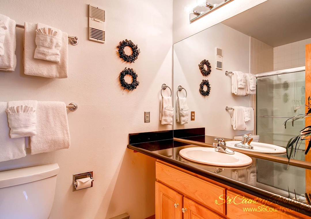 The master bedroom is a sanctuary of relaxation, featuring a Queen bed and private deck, an ideal and intimate space to admire the surrounding vistas of Breckenridge Ski Resort. Unwind while catching up on your favorite shows on TV or relax those muscles in the shower/tub of the attached private bathroom. The second bedroom is thoughtfully furnished with two Twin beds, perfect for accommodating additional guests. Moreover, the Queen sofa sleeper provides extra sleeping space, allowing the townhome to graciously host up to six people.